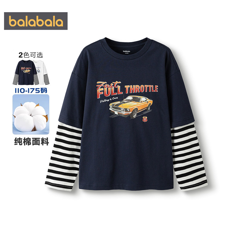 巴拉巴拉男童长袖T恤中大童假两件纯棉上衣春秋款童装儿童打底衫