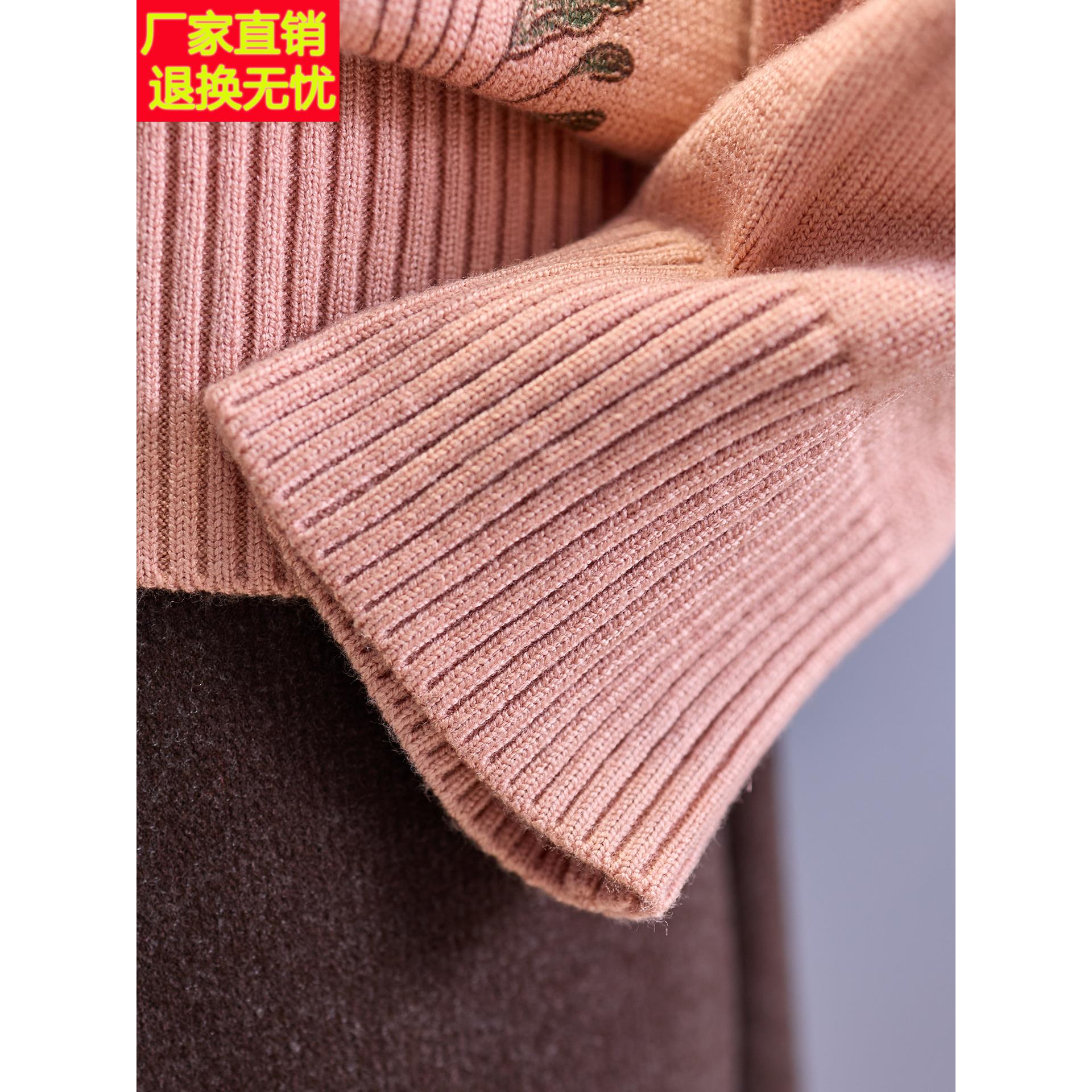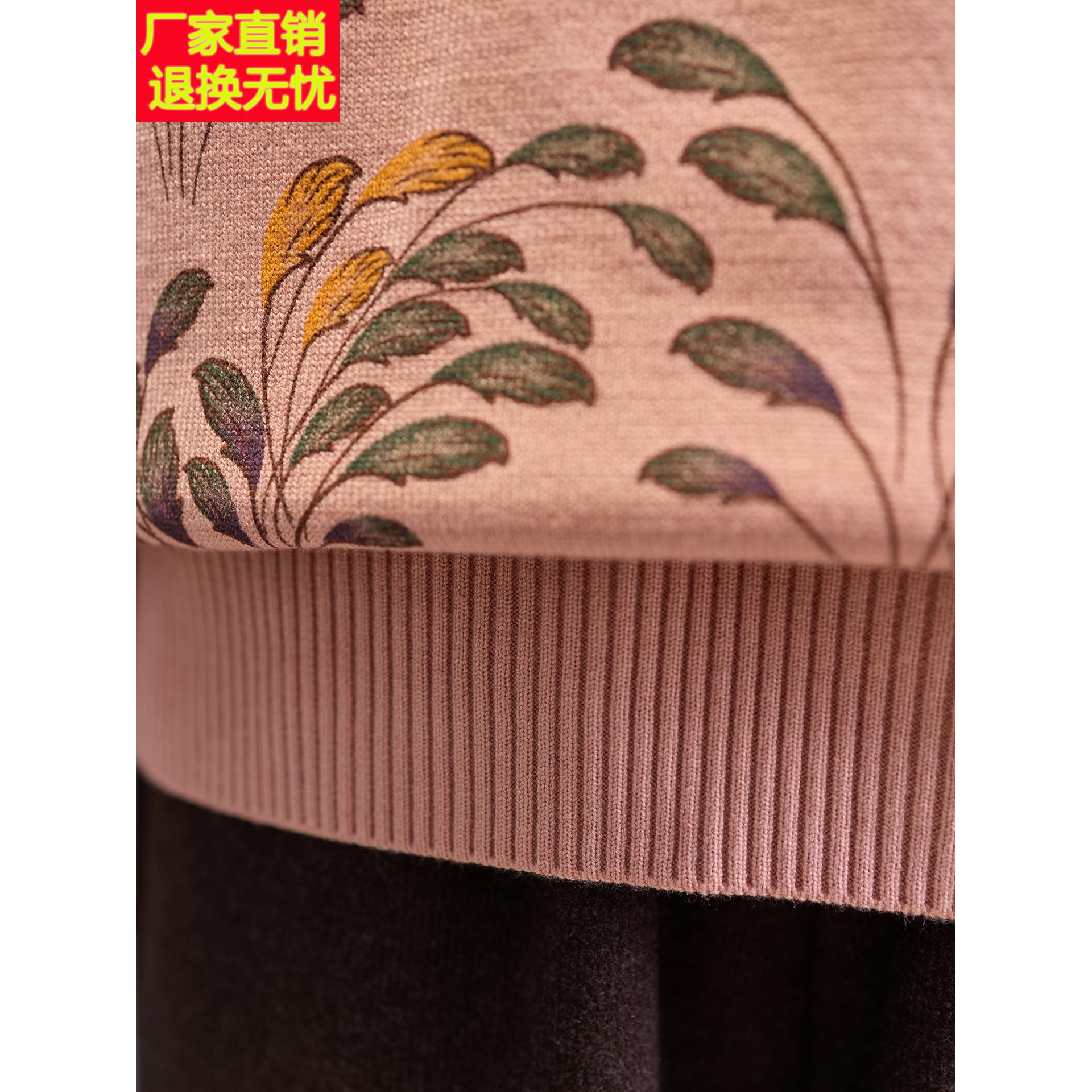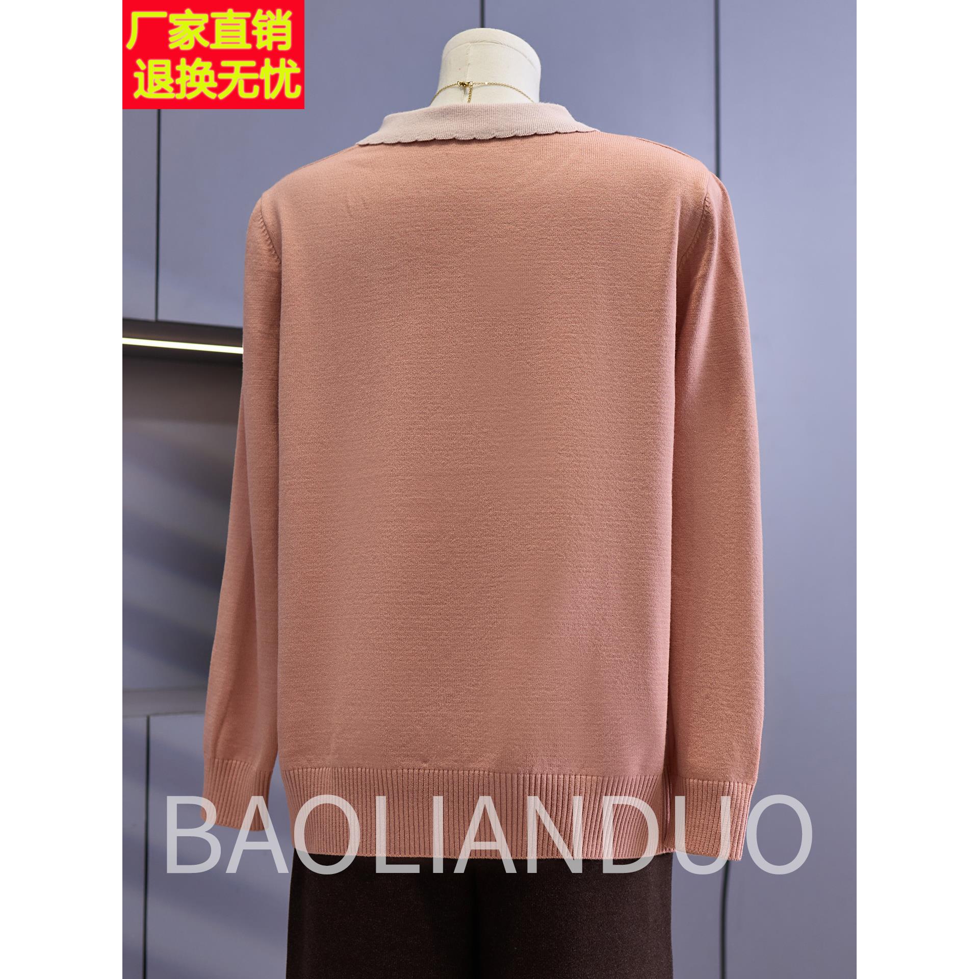 洋气妈妈秋装印花毛衣中年女装新款翻领上衣中老年春秋针织打底衫
