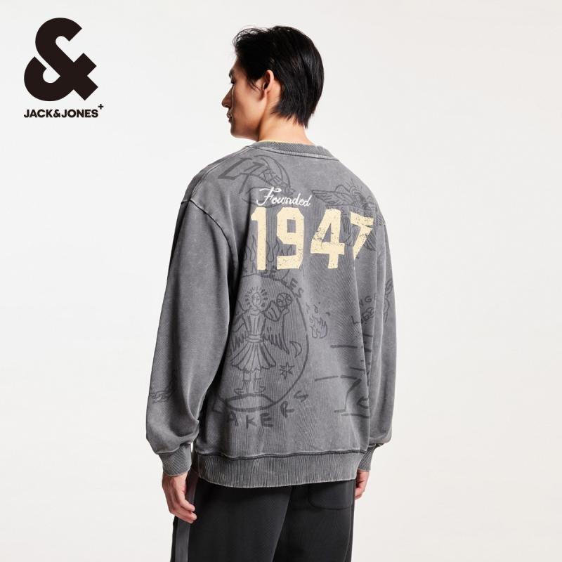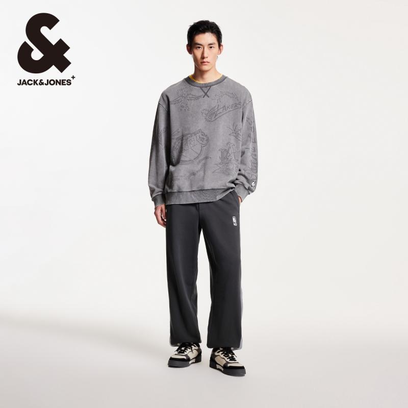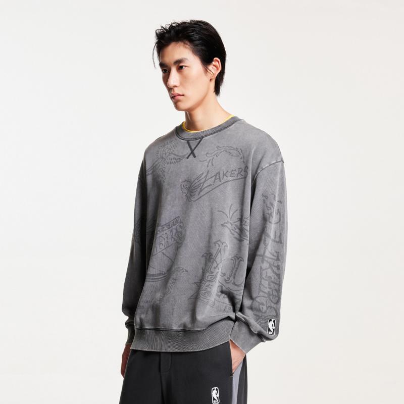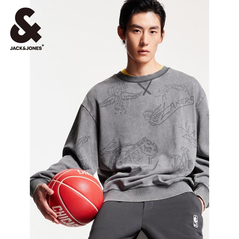 杰克琼斯冬季新款NBA联名湖人队衣身满印字母潮流圆领卫衣男装