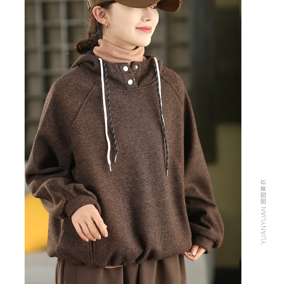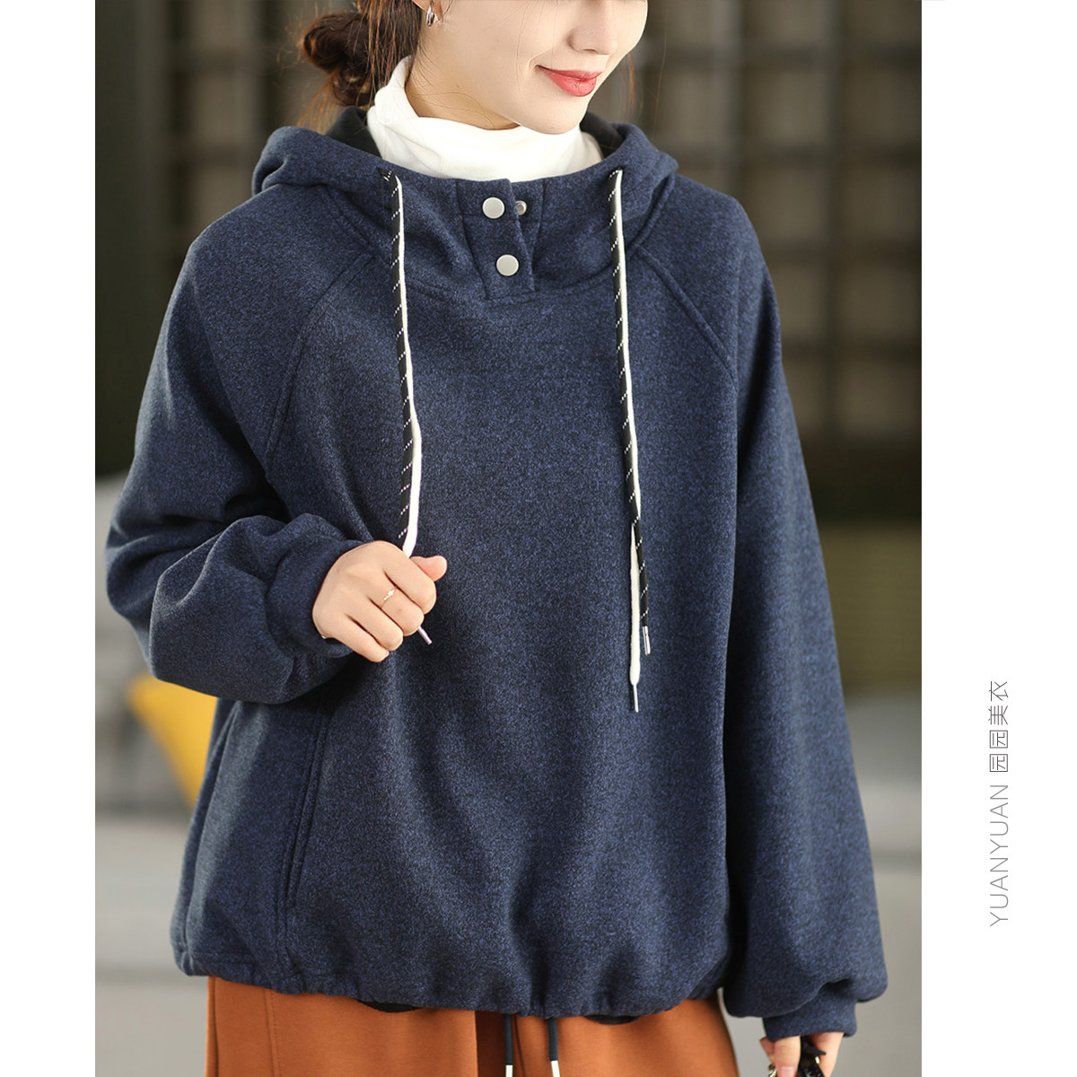 园园美衣冬季时尚毛呢连帽卫衣女内里加绒套头帽衫加厚保暖绒衫