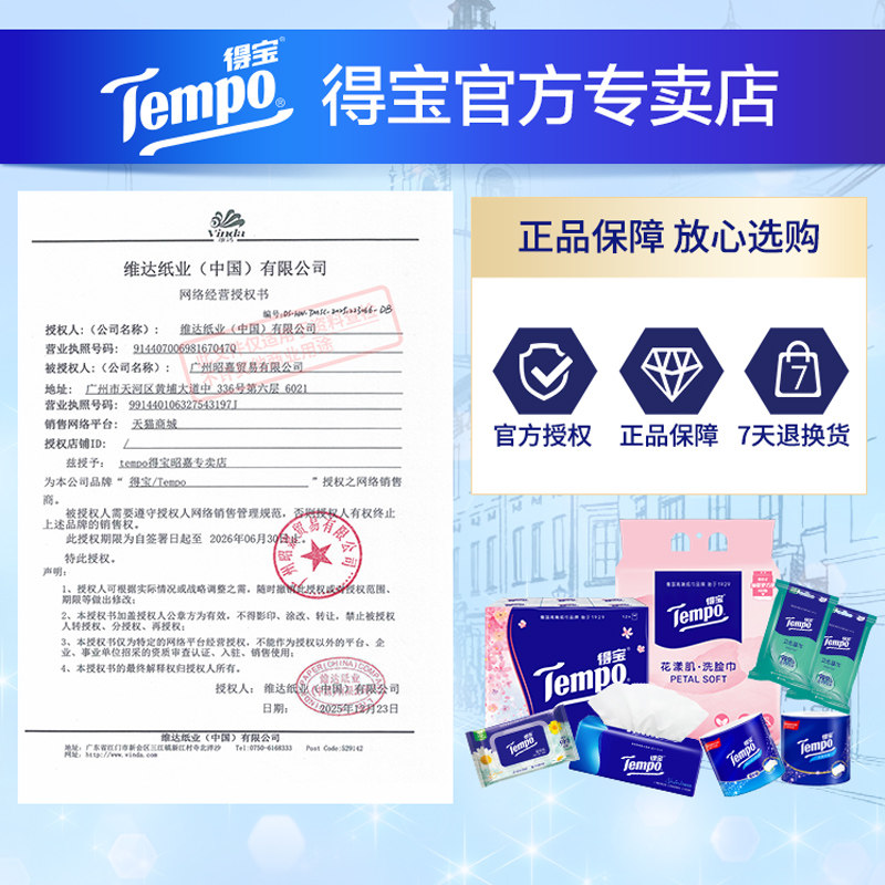 【王一博同款】Tempo得宝纸巾4层卫生纸厕纸德宝卷筒纸24卷手纸s