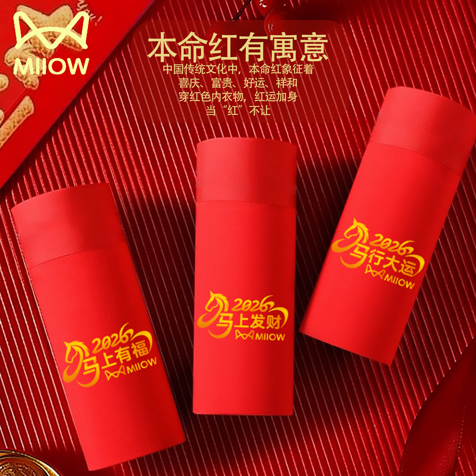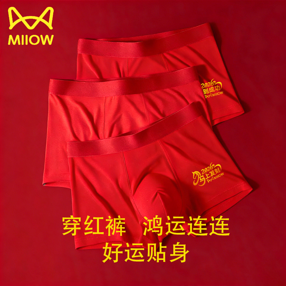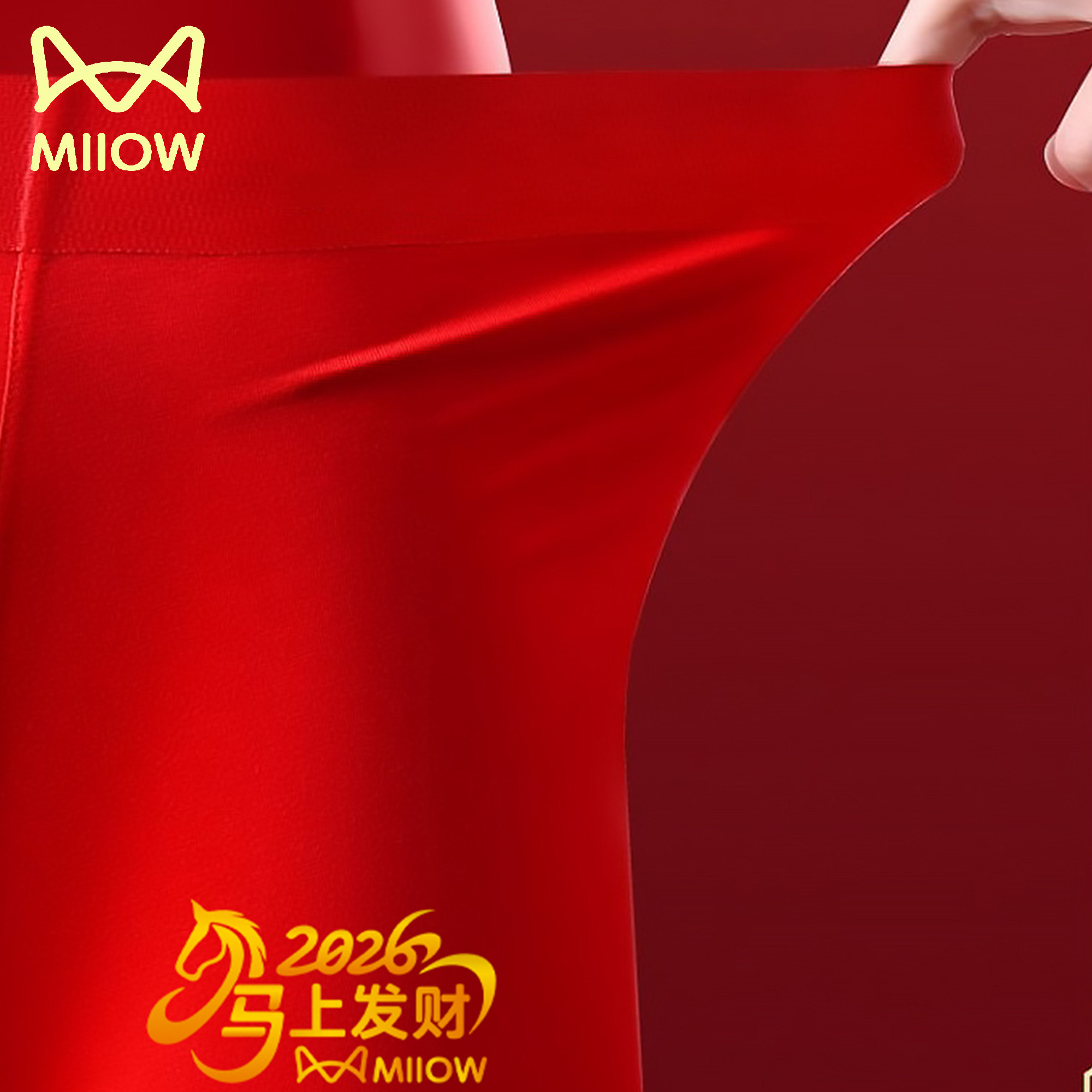 MiiOW/猫人红色男士内裤冰丝无痕本命年男生青少年透气平角短裤衩