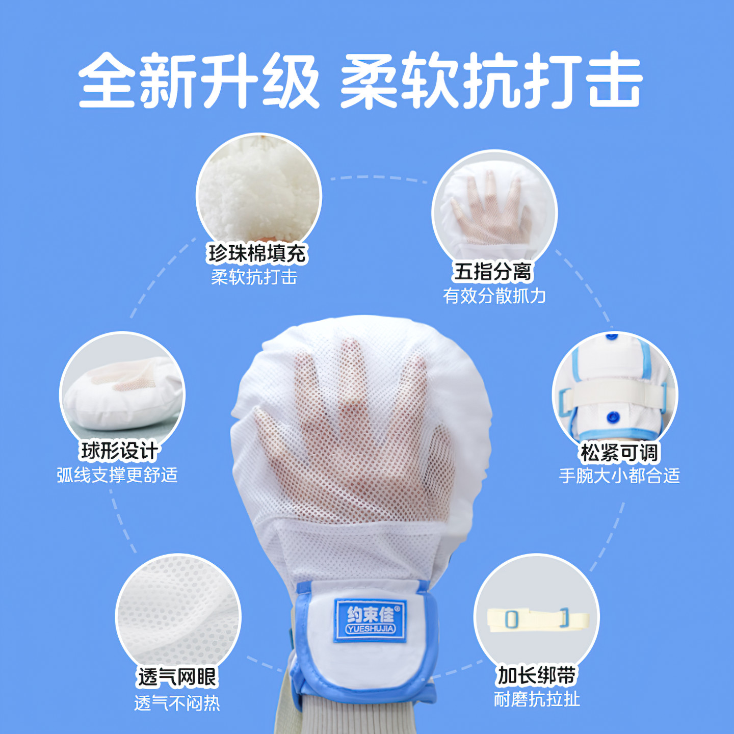 乐惠透气束缚手套老人卧床防抓挠病人防拔管球形约束固定手套男女