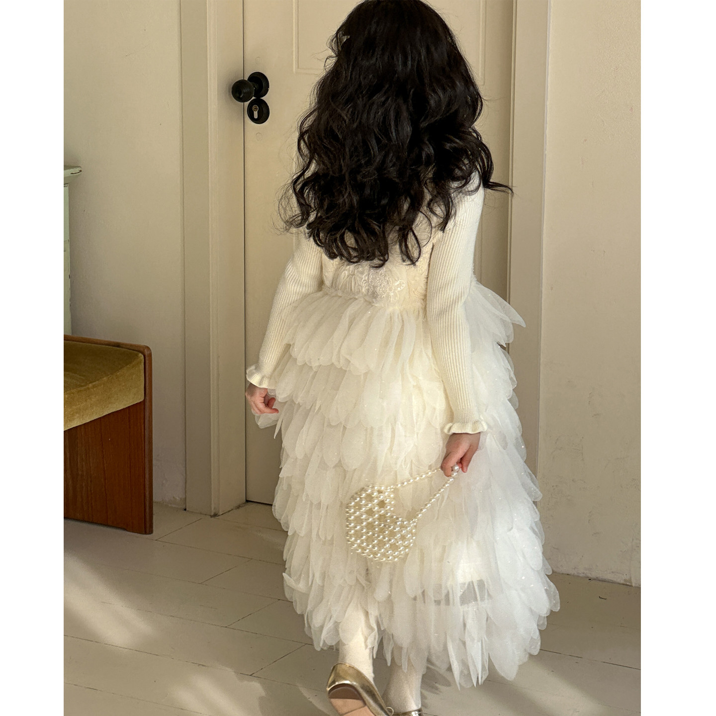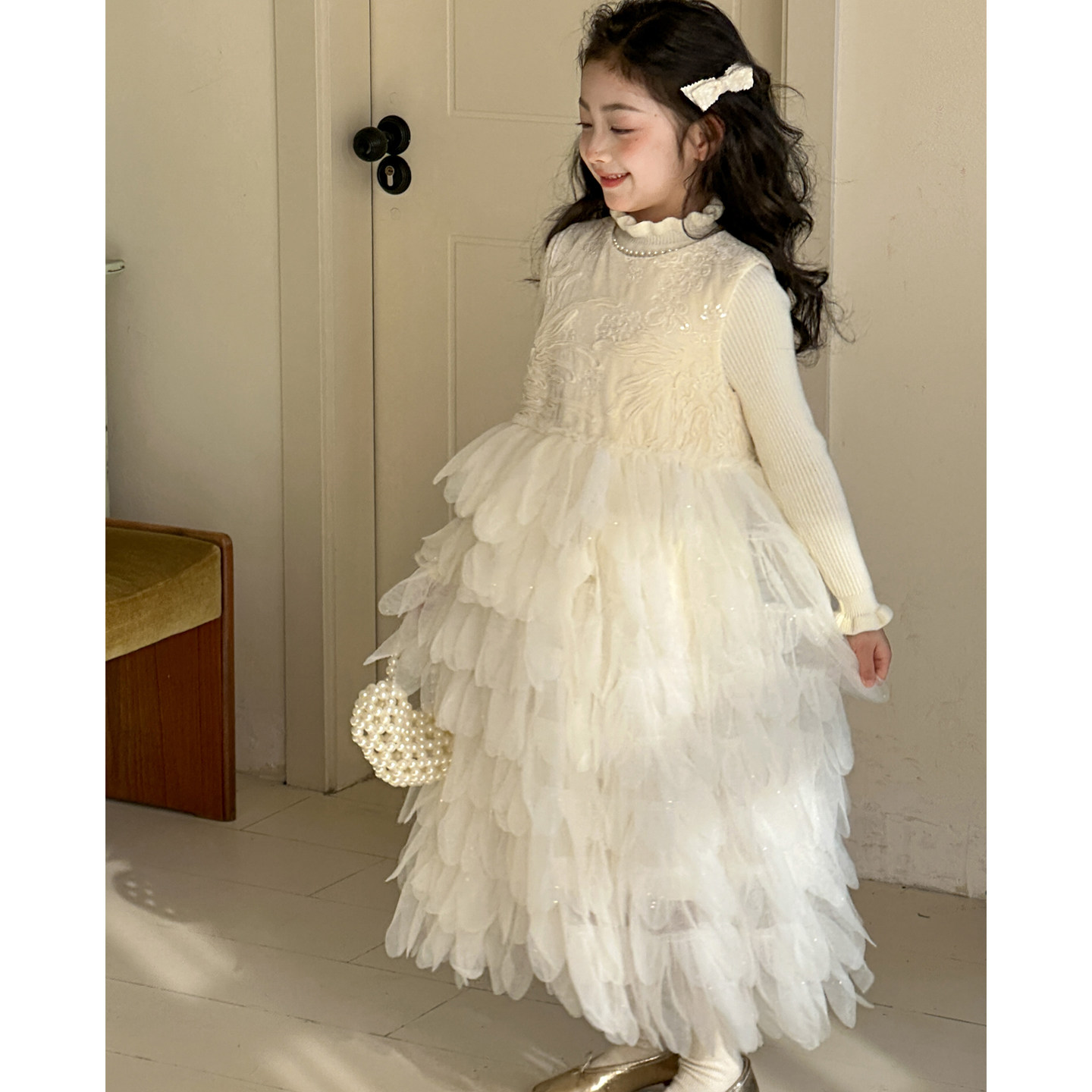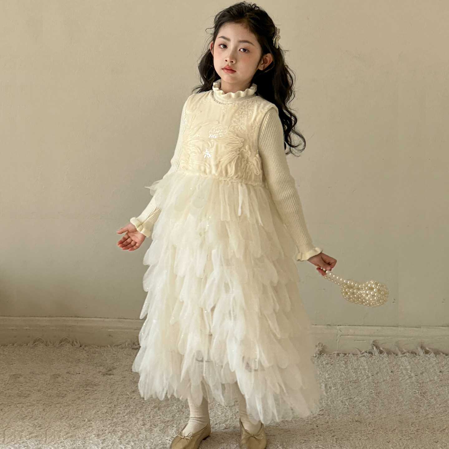 女童小香风背心裙2026新款儿童羽毛裙过新年服装女大童公主蛋糕裙