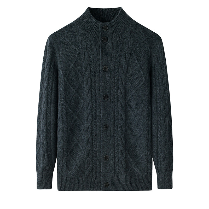鄂尔多斯市产100山羊绒衫男开衫半高领加厚纯色秋冬保暖毛衣外套