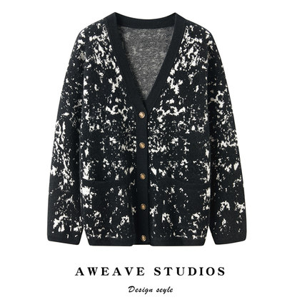 2025秋冬新款羊绒衫V领女100%纯山羊绒开衫时尚宽松慵懒针织外套
