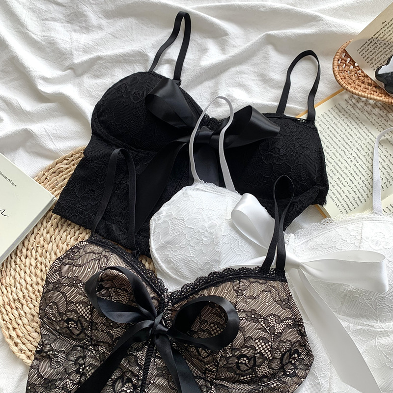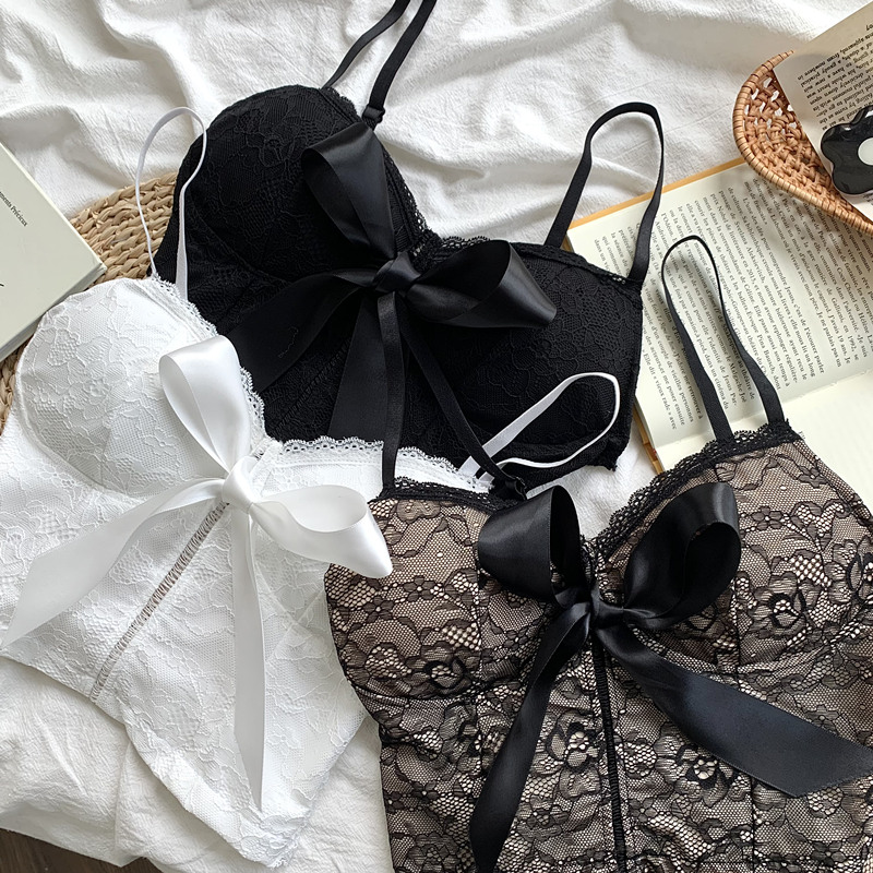 2023新款时尚气质性感蕾丝蝴蝶结短款小吊带背心带胸垫女内搭抹胸