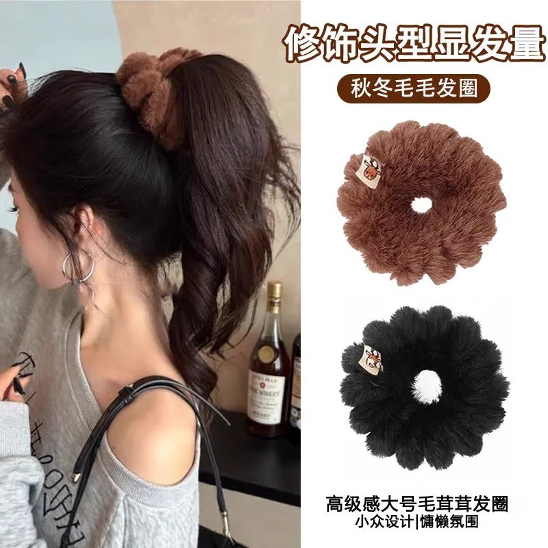 秋冬低丸子头毛绒电话线发圈不伤发高弹力头绳2025新款网红爆款