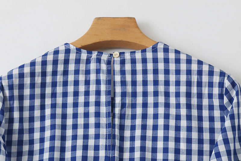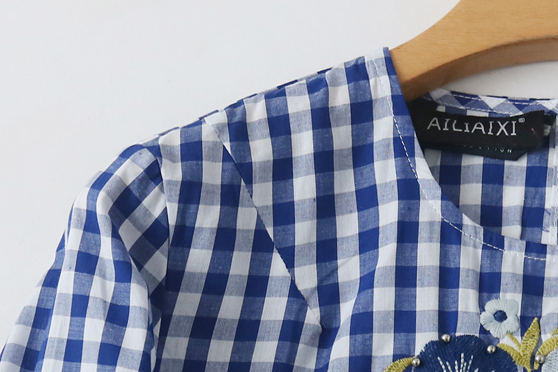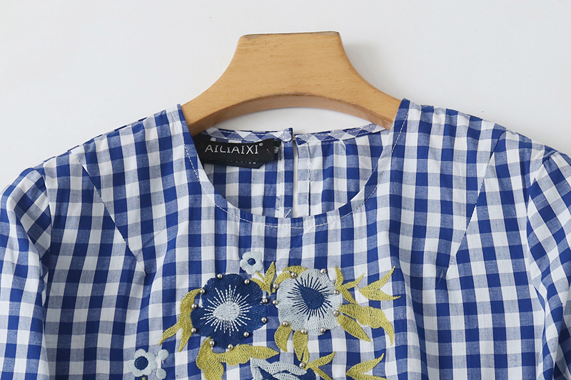 圆领刺绣衬衫 春夏装新款格子衬衣女韩版宽松拼接时尚上衣 M/10-3