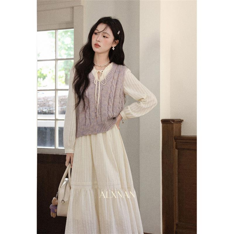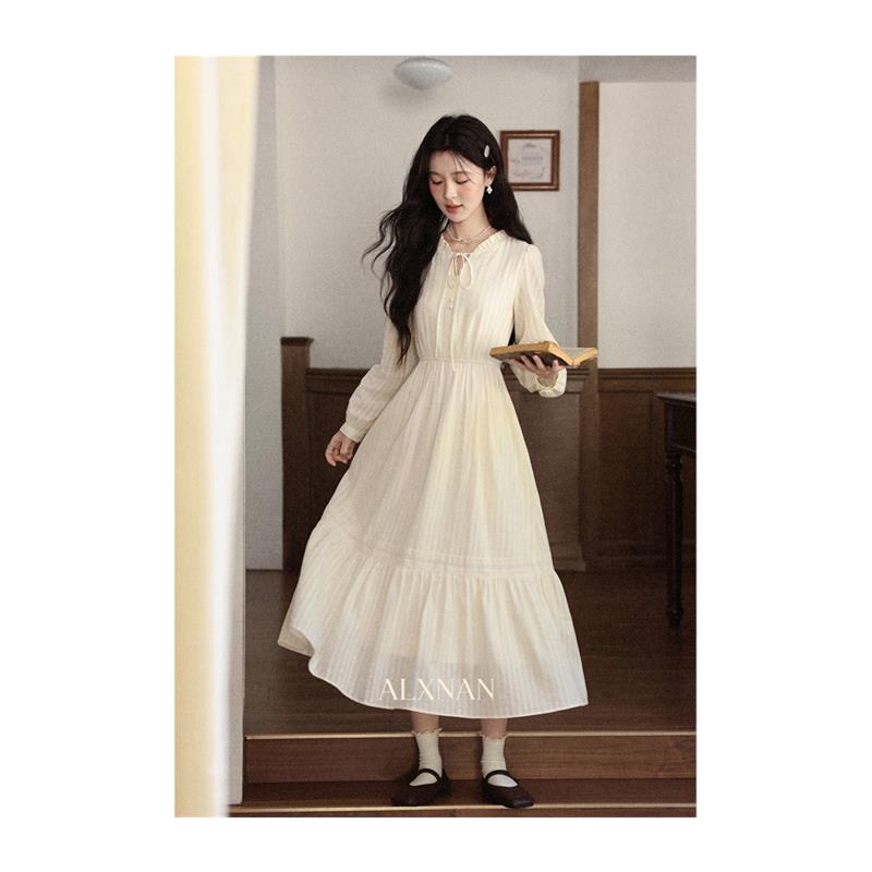 法式长袖秋季连衣裙小个子2025新款裙子系带气质秋冬打底内搭长裙