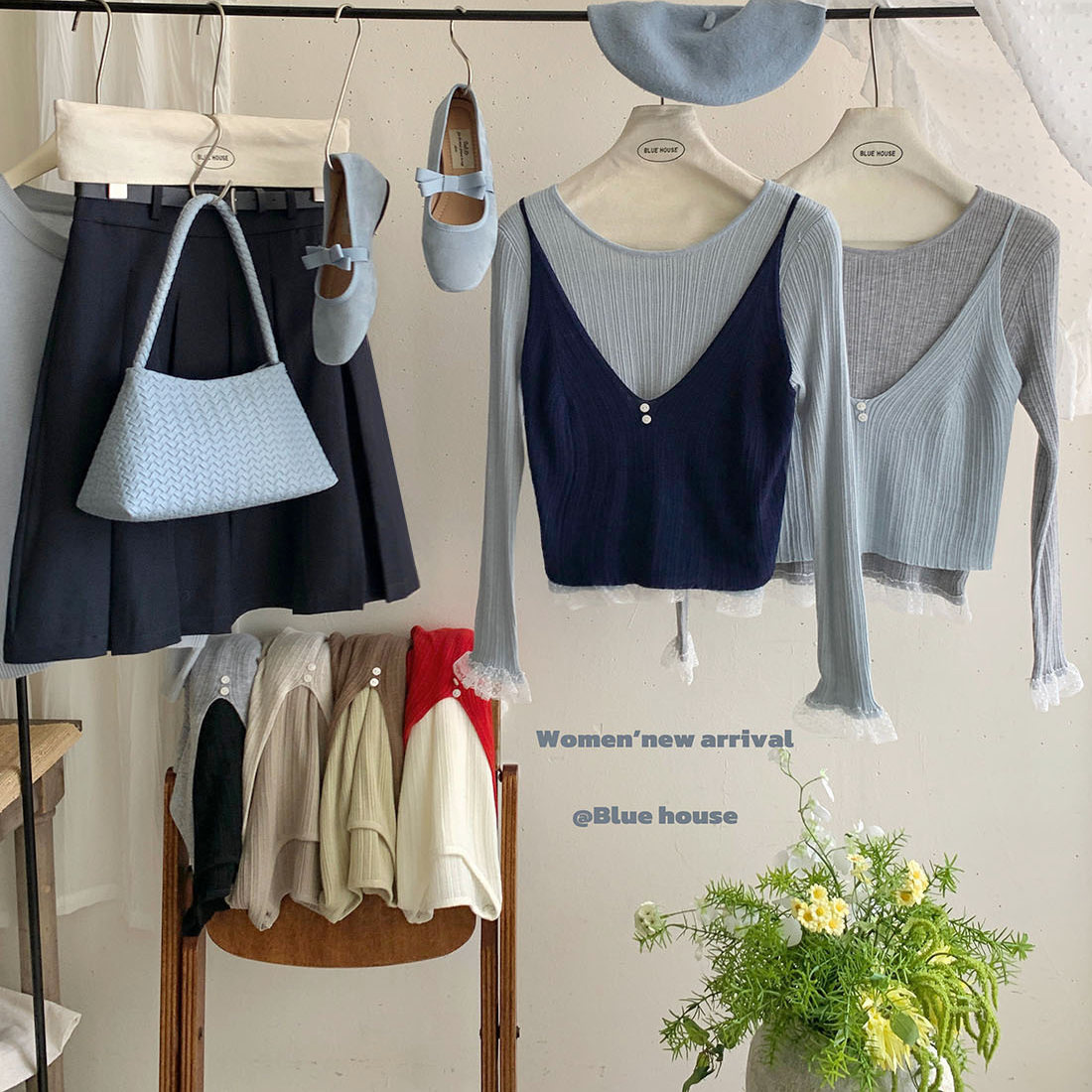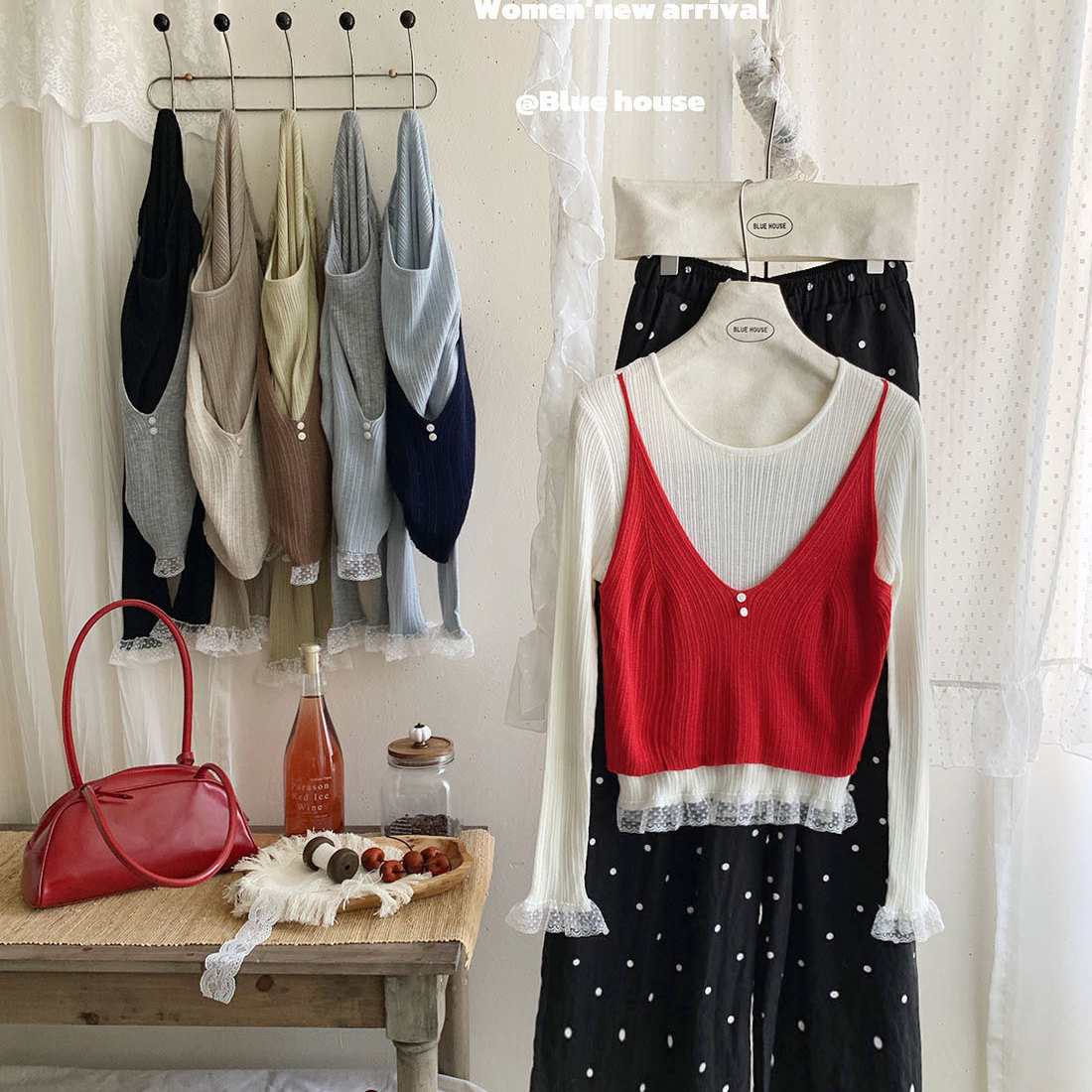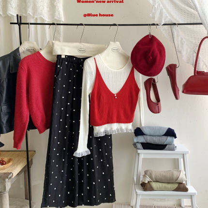 韩系层次撞色叠穿假两件长袖针织
