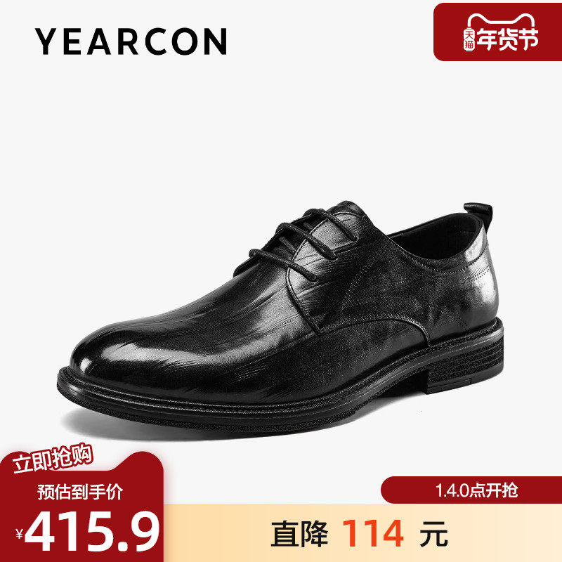 意尔康皮鞋男正装商务秋季新款时尚真皮压纹复古棕色男士皮鞋结婚