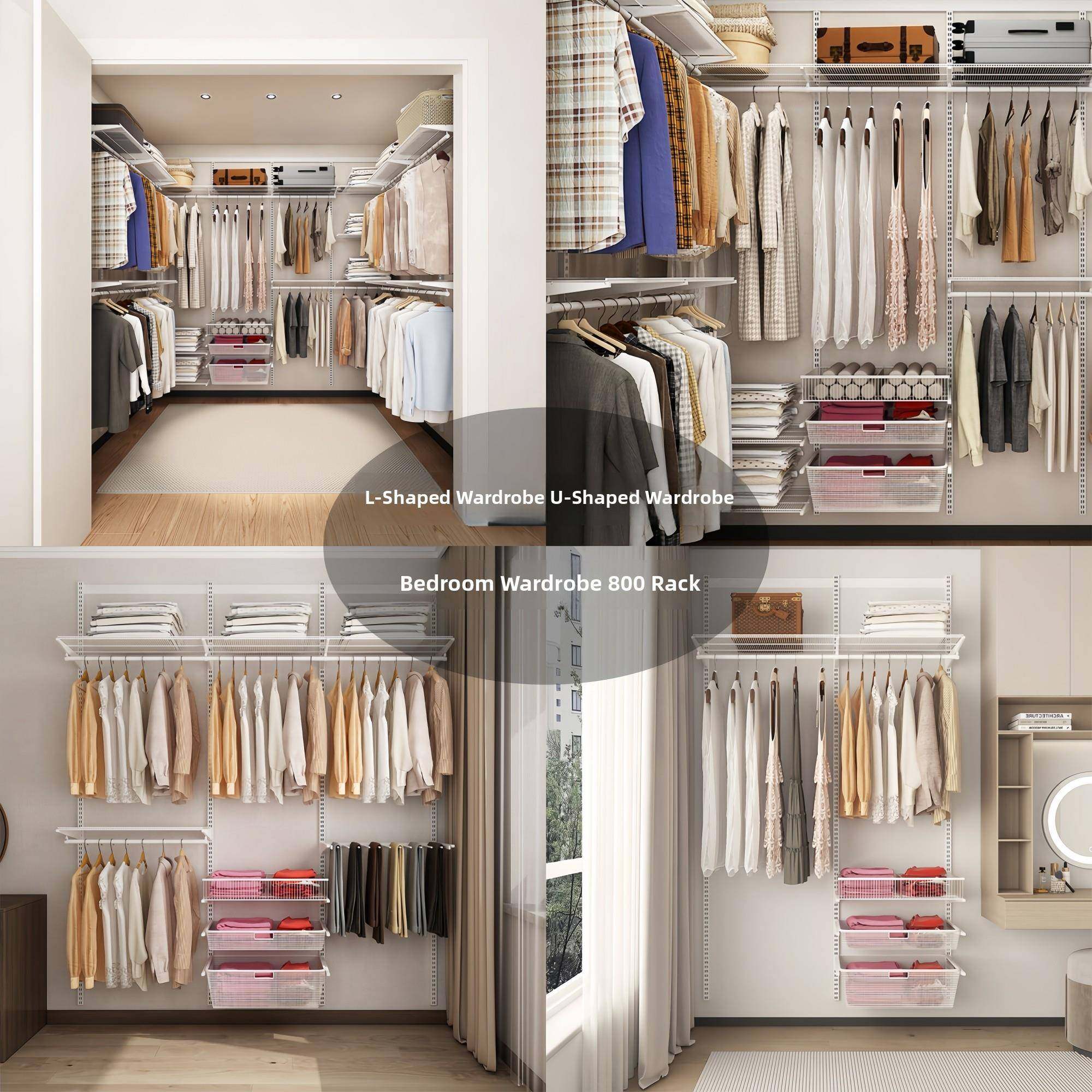 Aa柱开放式金属衣柜衣架白色网眼储物衣帽间组合套挂衣架