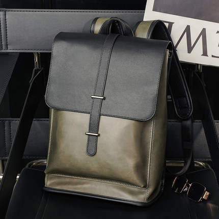 新款复古双肩包韩版潮流男包旅行背包疯马PU大容量学生书包电脑包