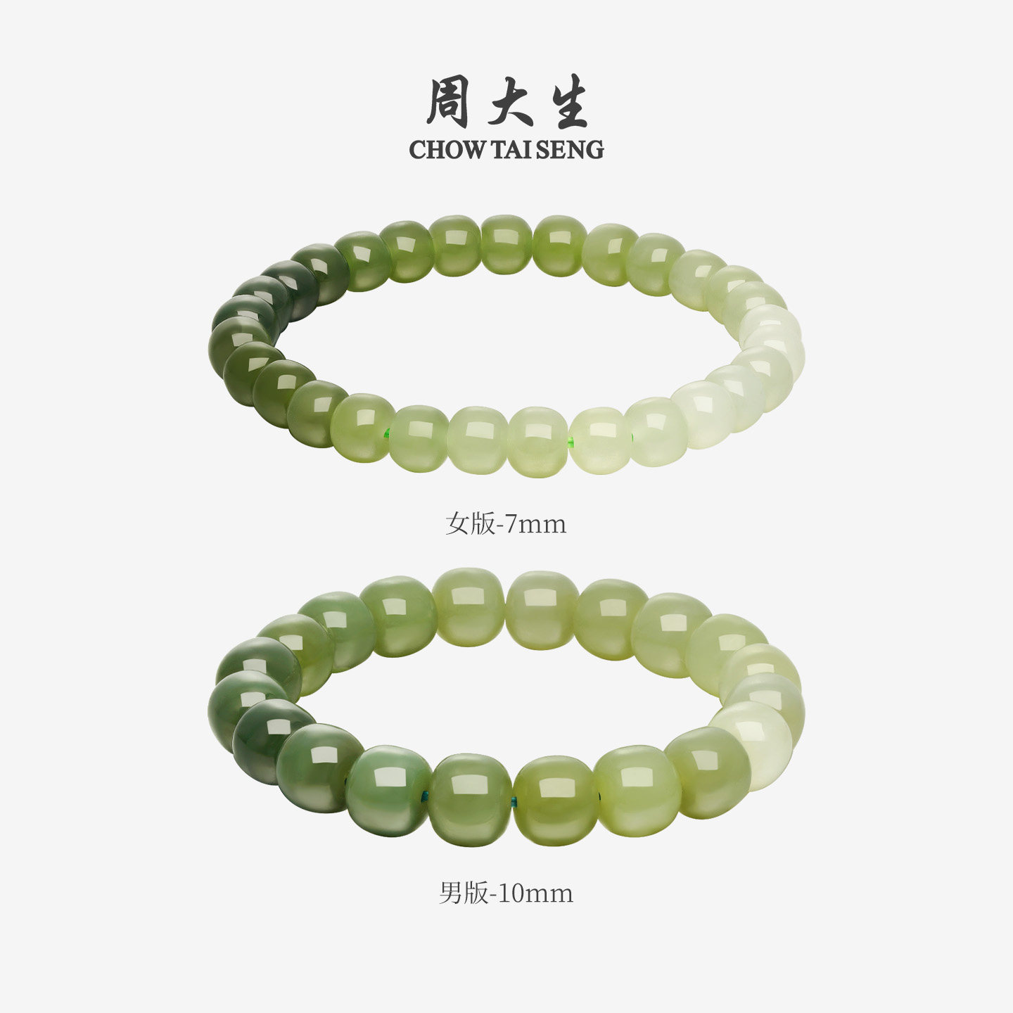 周大生和田玉渐变手串男女款玉石手链素玉情侣款新年礼物送男女友