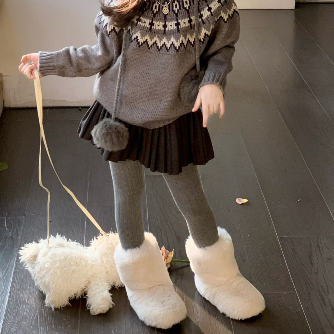 女童毛呢半身裙景花花韩版洋气