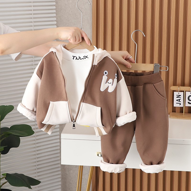 新款宝宝洋气加厚棒球服小男孩帅气秋冬季三件套男童加绒套装冬季
