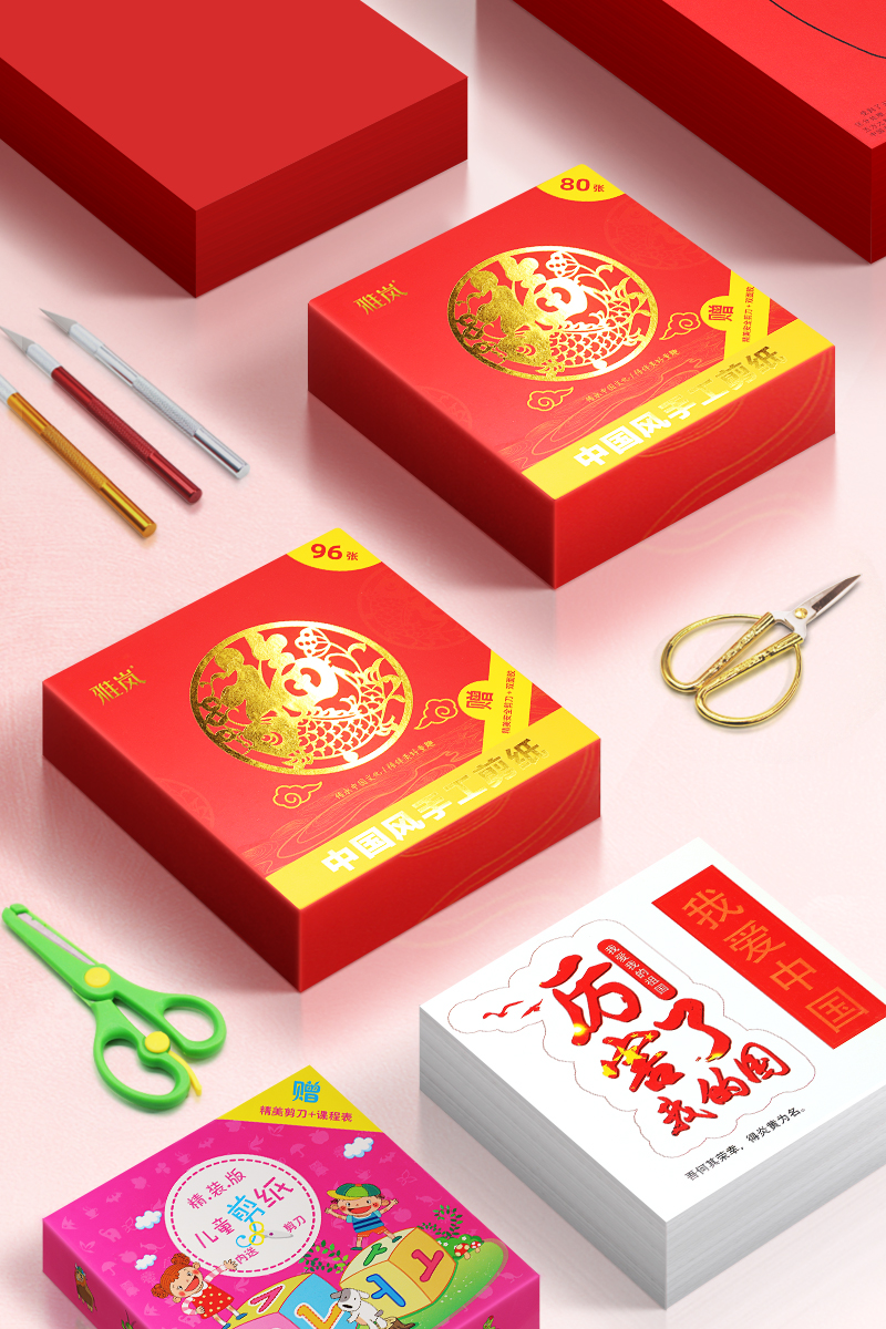 中国风剪纸窗花儿童手工专用大红线稿图案材料包diy十二生肖剪纸