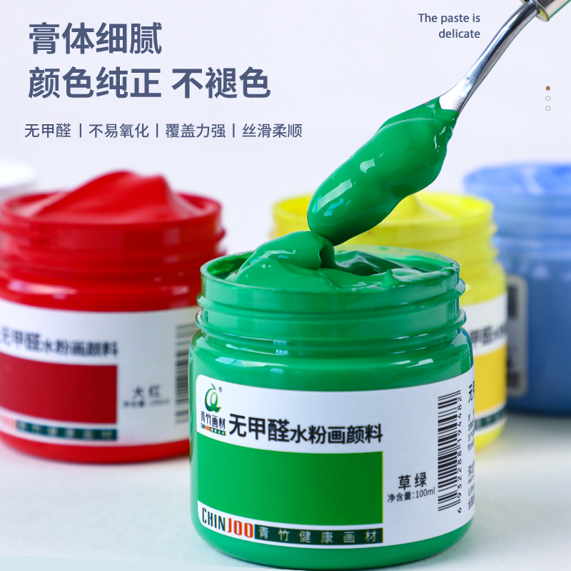 青竹水粉画颜料套装初学者罐装100ML儿童学生用大瓶白色12色18色36色画画工具色彩绘画补充装水彩广告色颜料