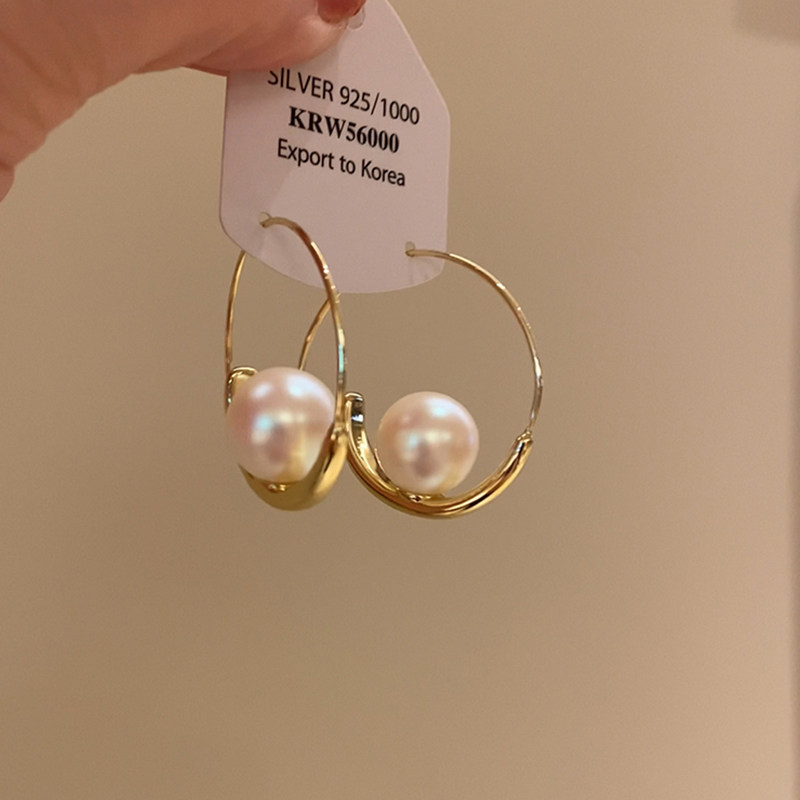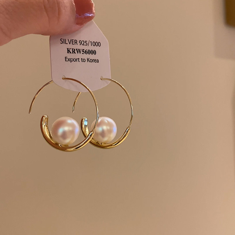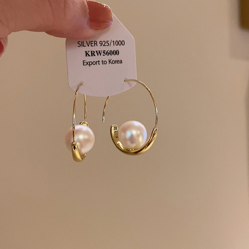 S925银法式珍珠耳环2025新款爆款