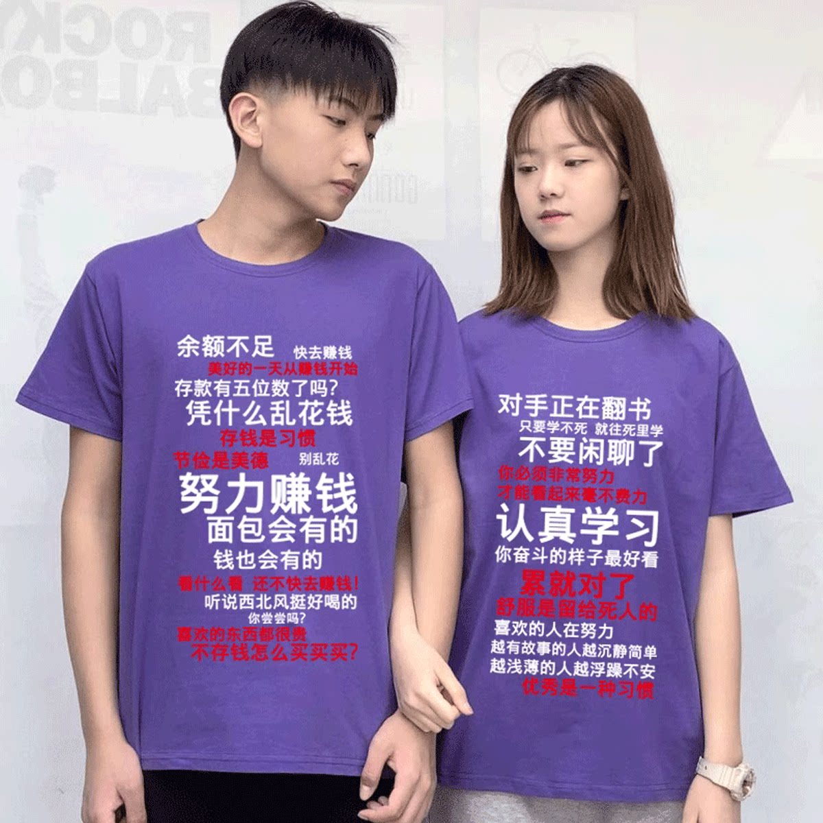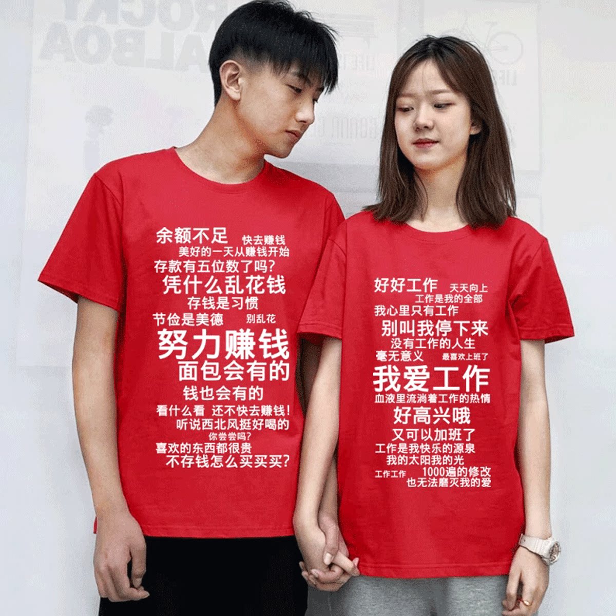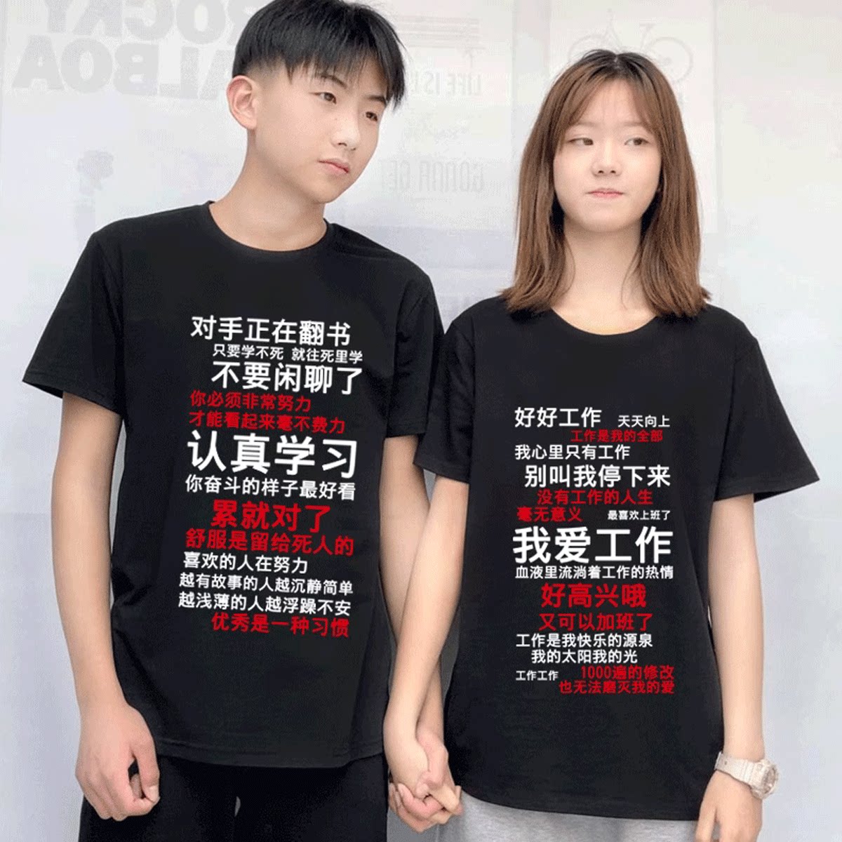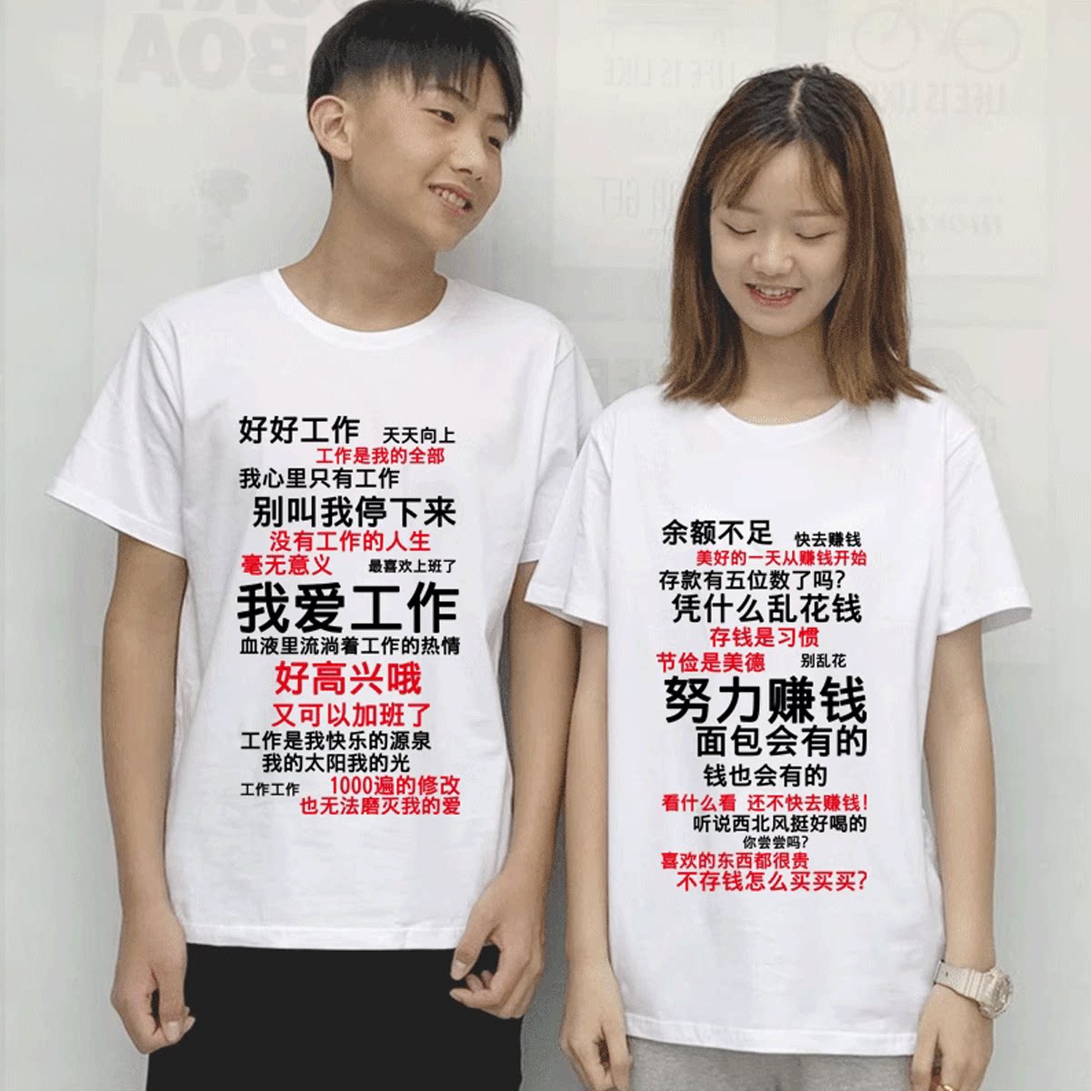 我爱工作余额不足认真学习男女休闲纯棉短袖创意弹幕个性百搭-T恤