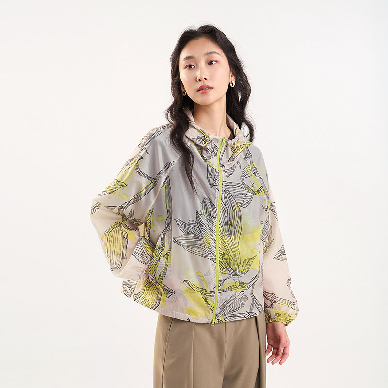 [专柜同款]Yifini/易菲宽松连帽长袖轻薄短款外套时尚百搭上衣女
