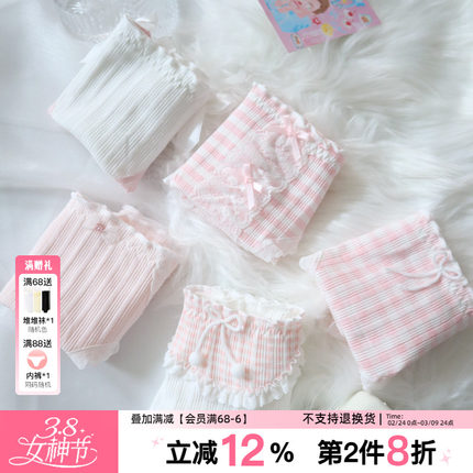 淡粉裙摆~少女内裤粉色甜美蕾丝花边日系抗菌舒适纯棉女士三角裤