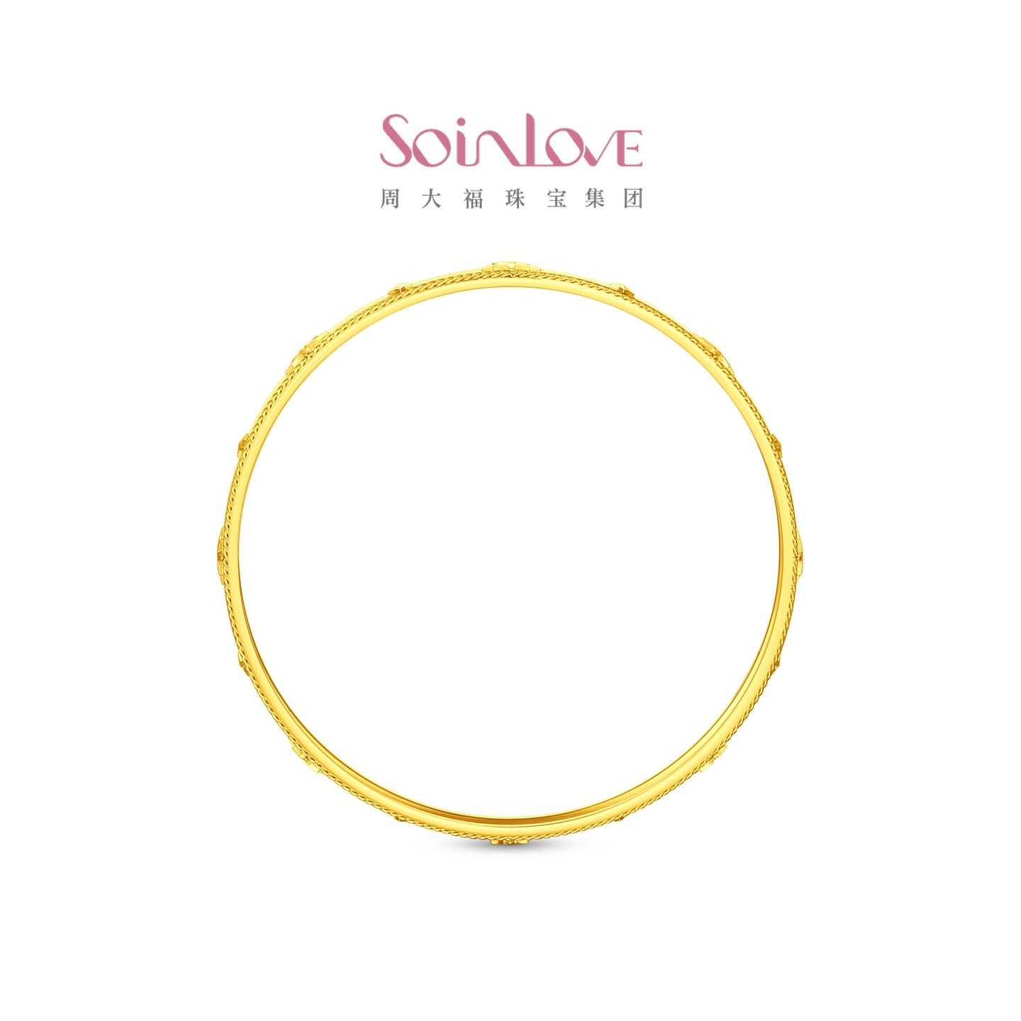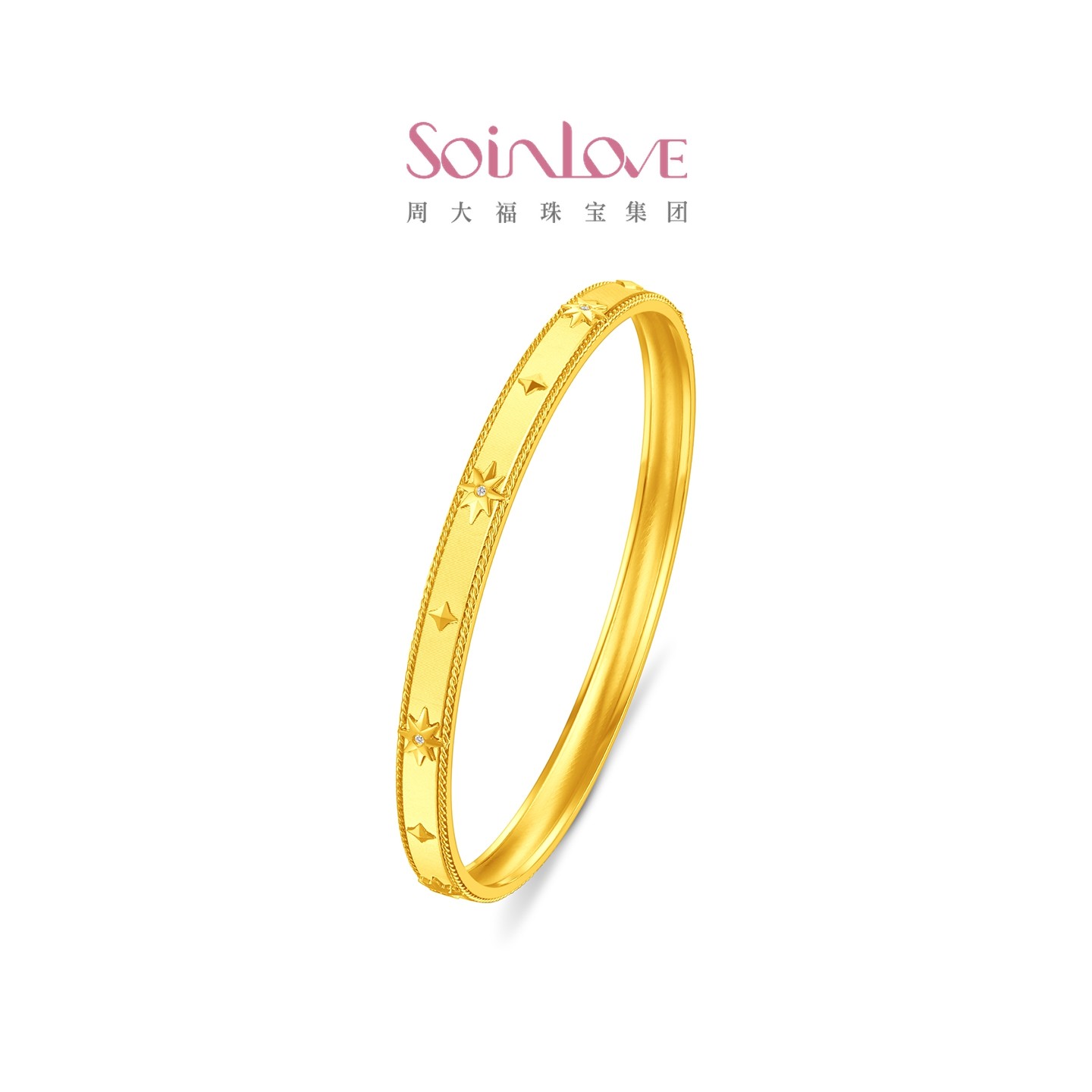 周大福SOINLOVE MUSE缪斯系列星芒足金黄金镶钻石手镯 圣诞礼物