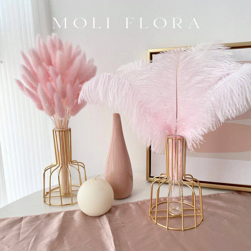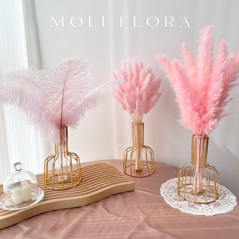 轻奢粉色芦苇兔尾草干花花束摆件真花天然风干装饰北欧客厅摆设