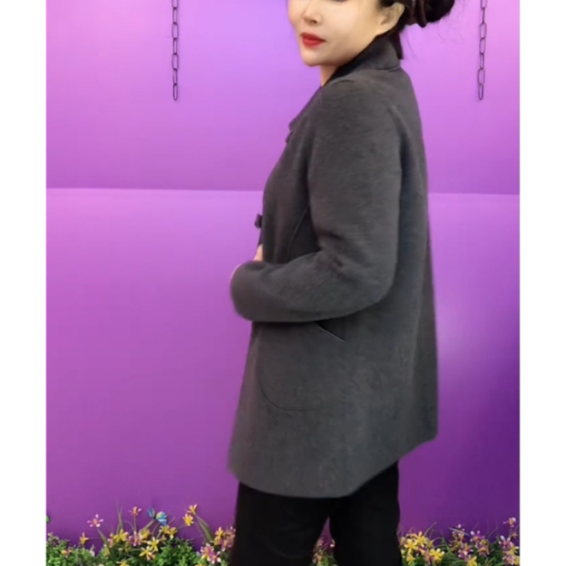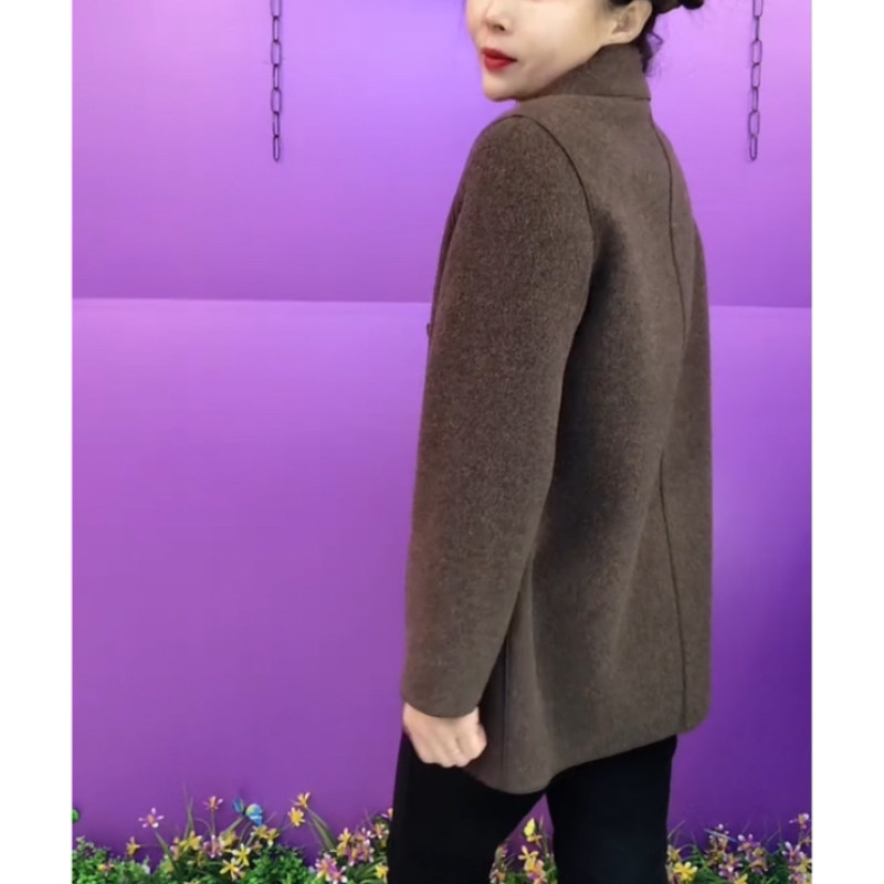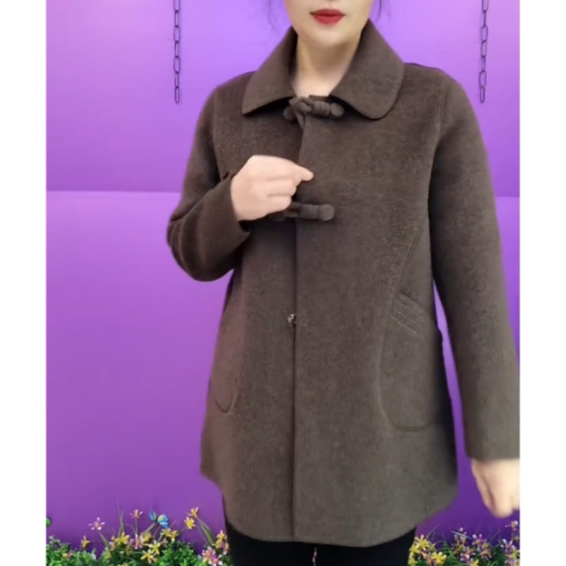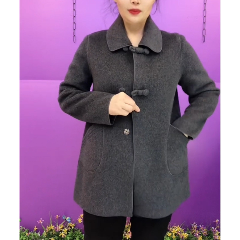 中老年人双面呢羊毛大衣女高贵大码胖妈妈秋冬装洋气宽松呢子外套