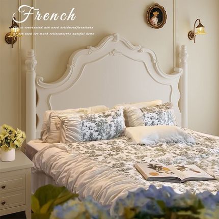 美式实木床现代简约白色法式奶油风公主卧室双人床1m81.5复古轻奢
