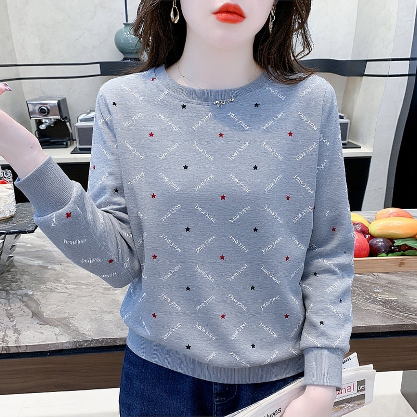 初秋花灰色圆领卫衣女宽松显瘦打底衫秋装新款设计感无帽长袖上衣