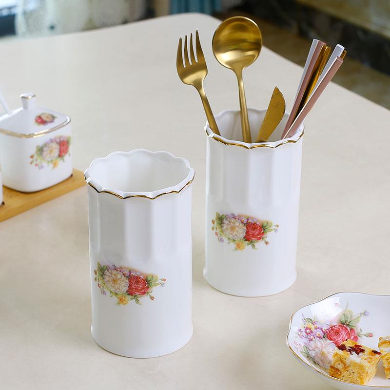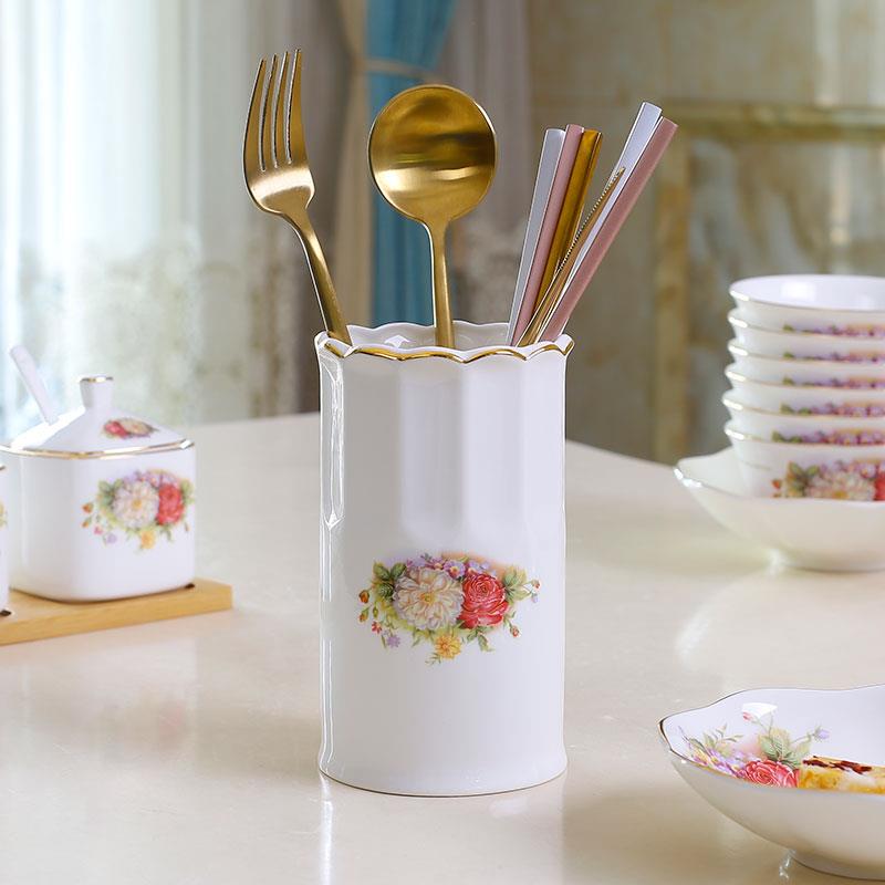 欧式骨瓷筷子筒家用陶瓷筷笼大号筷子桶沥水餐具收纳盒筷子篓