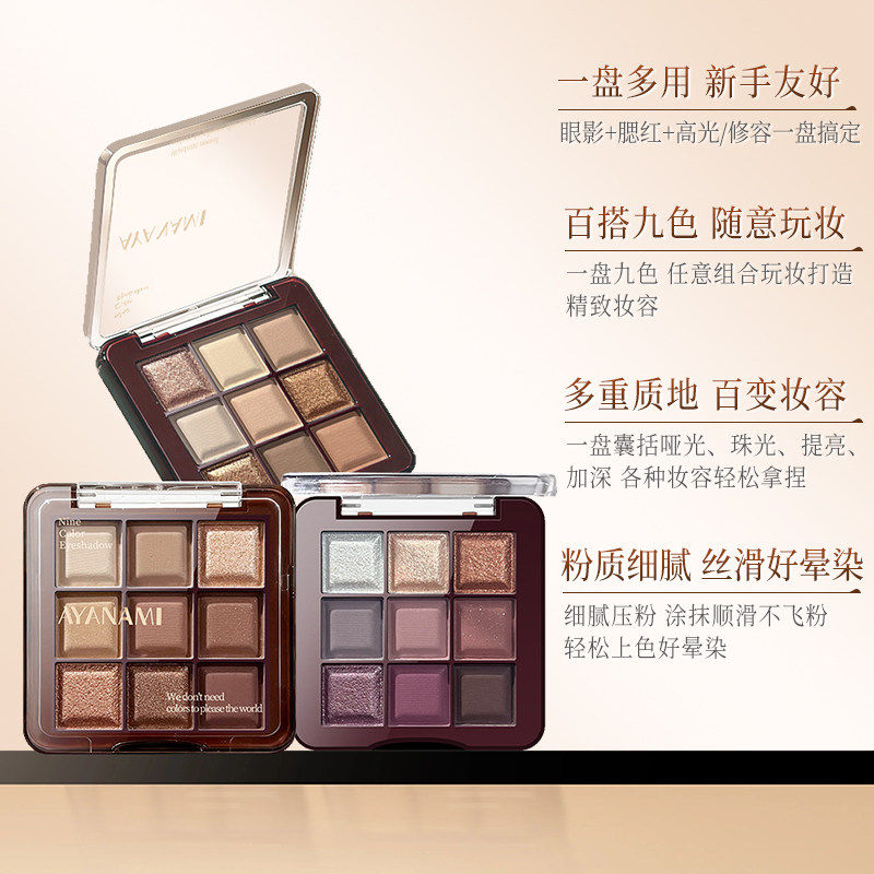 AYANAMI九色眼影盘日常淡妆大地色暖棕2025新款烟熏多色系彩妆