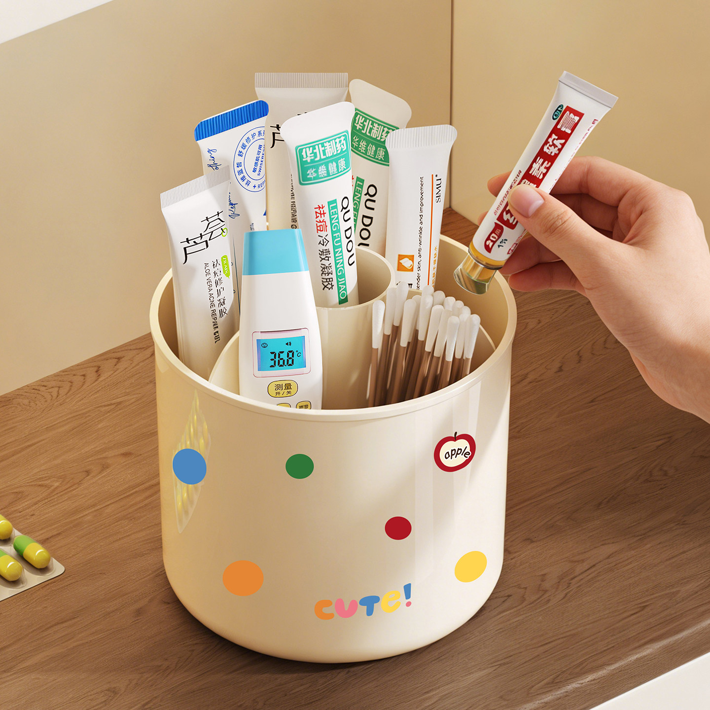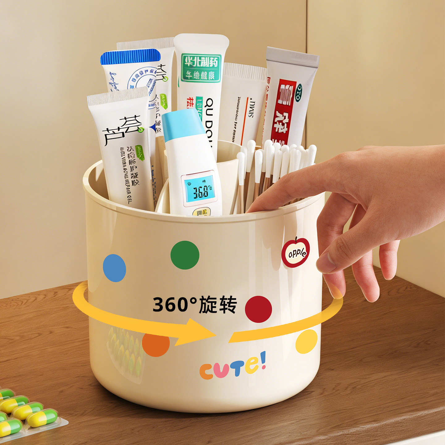 旋转药膏收纳盒分格管状药品乳膏整理神器桌面条状软膏药物置物架