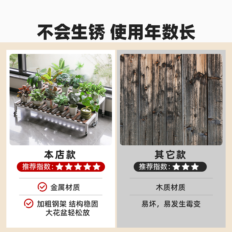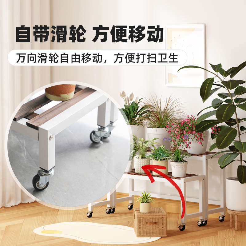 2025新款带轮花架子客厅落地式室内铁艺可移动置物架靠墙花盆架子