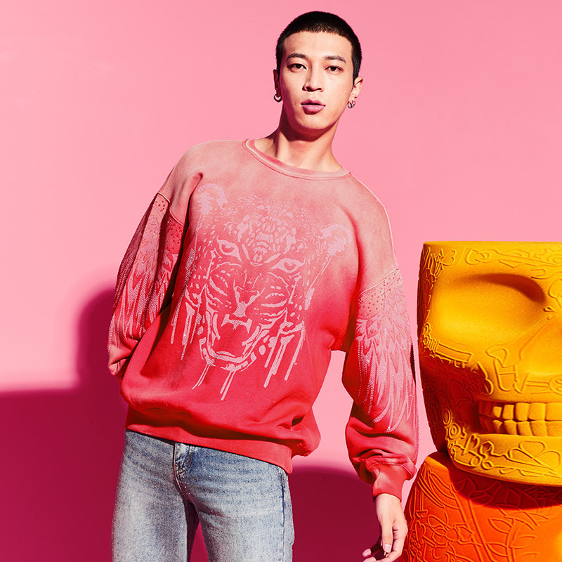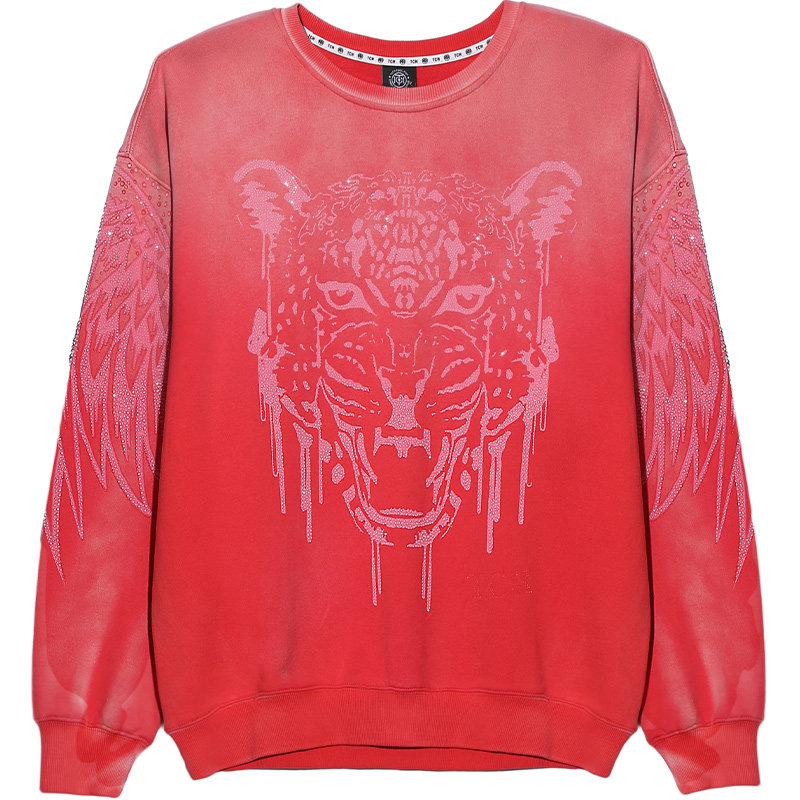 TCH冬季潮牌轻奢重工烫钻老虎头潮流纯棉长袖卫衣男女同款