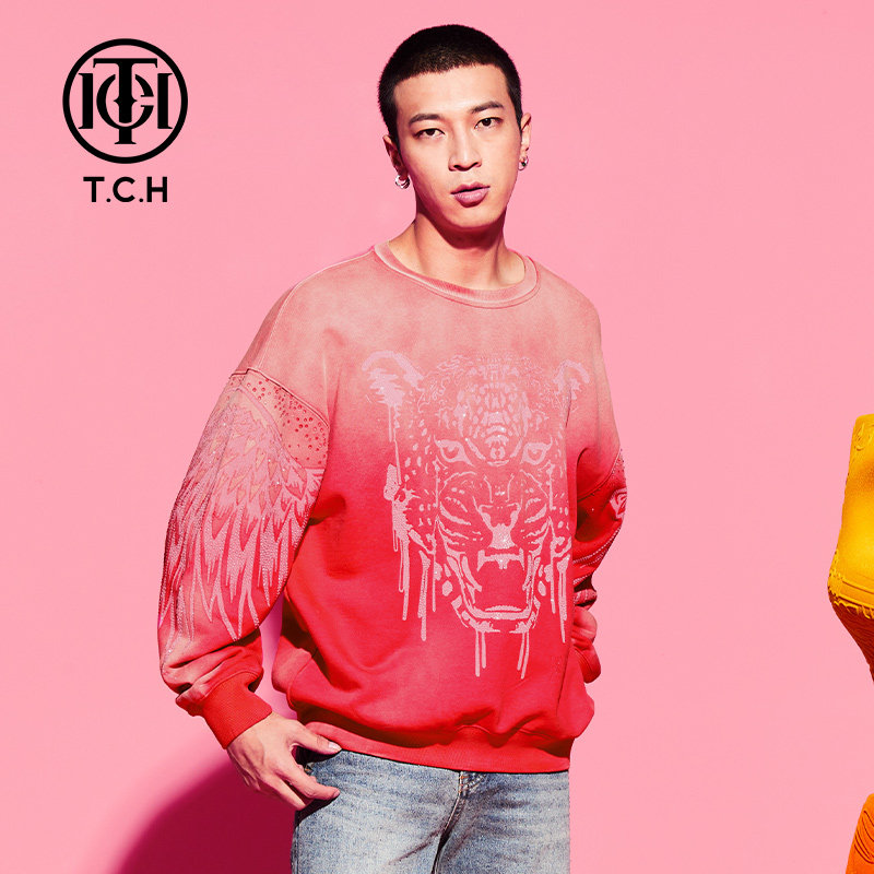 秋季潮牌烫钻TCH卫衣轻奢