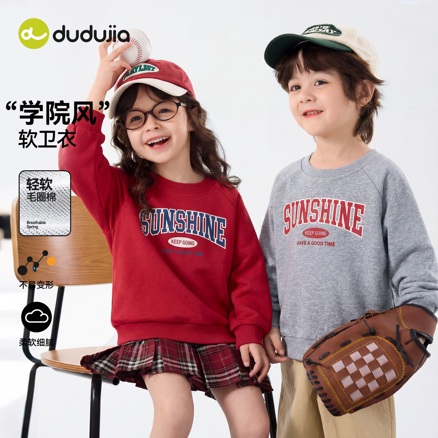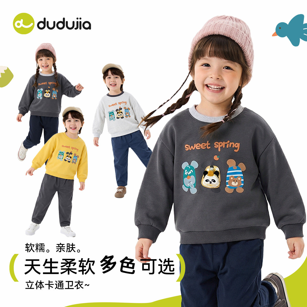 嘟嘟家儿童卫衣男童加绒加厚宝宝童装新款女童春装长袖上衣红色潮