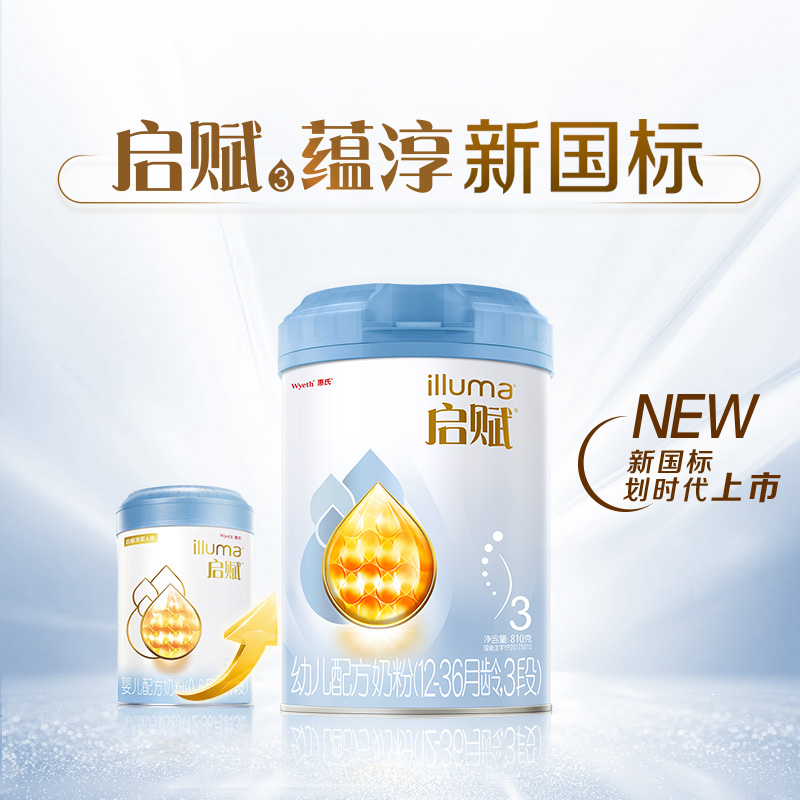 惠氏启赋新国标蓝钻3段爱尔兰进口较大幼儿配方牛奶粉810g罐装3岁