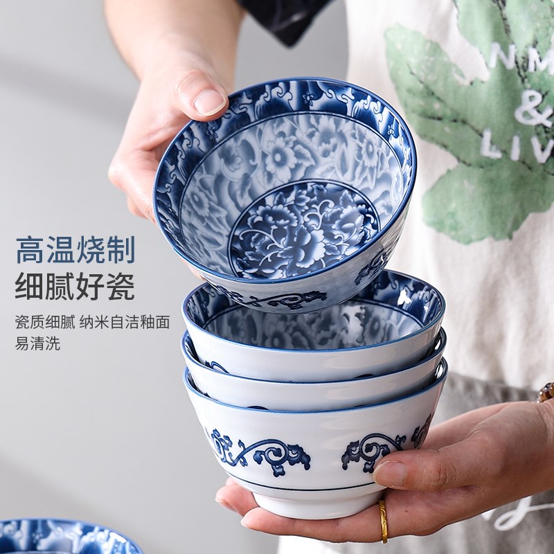 釉下彩青c花瓷碗陶瓷吃饭碗汤碗面碗菜盘中式餐具碗碟套装碗盘家