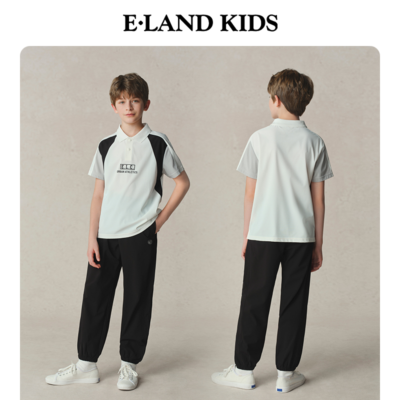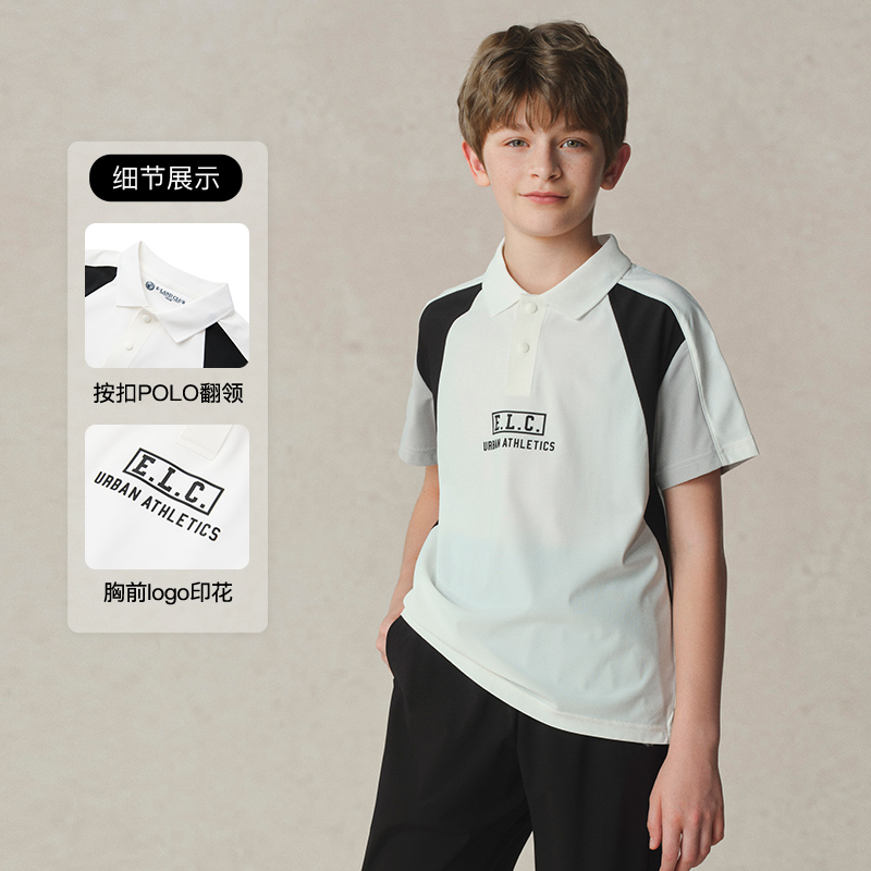eland kids衣恋童装男童POLO衫25年夏新品字母印花短袖插肩袖T恤