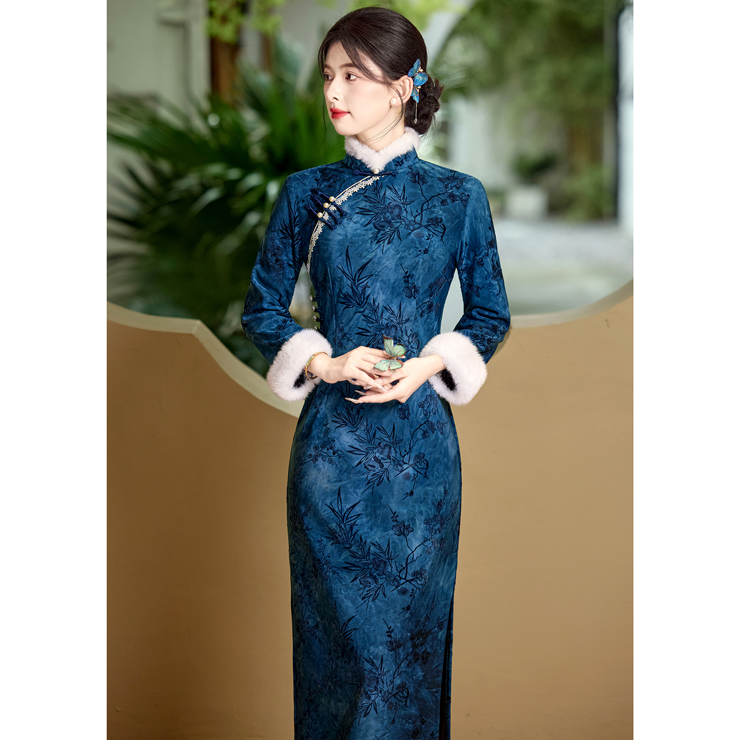 绣玫国风中式长款改良旗袍