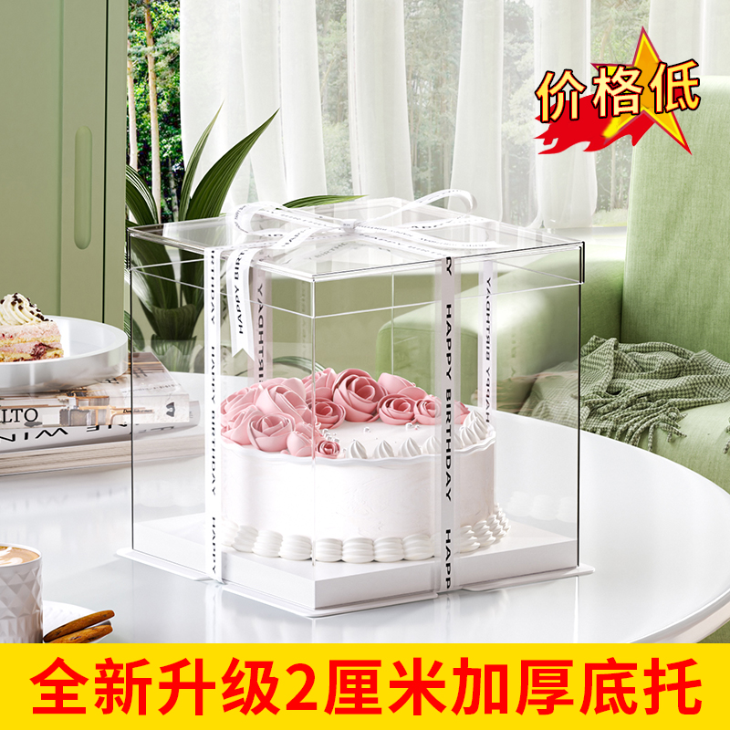 透明蛋糕盒单层可定制6寸8寸10寸12寸三层加高生日甜品包装蛋糕盒