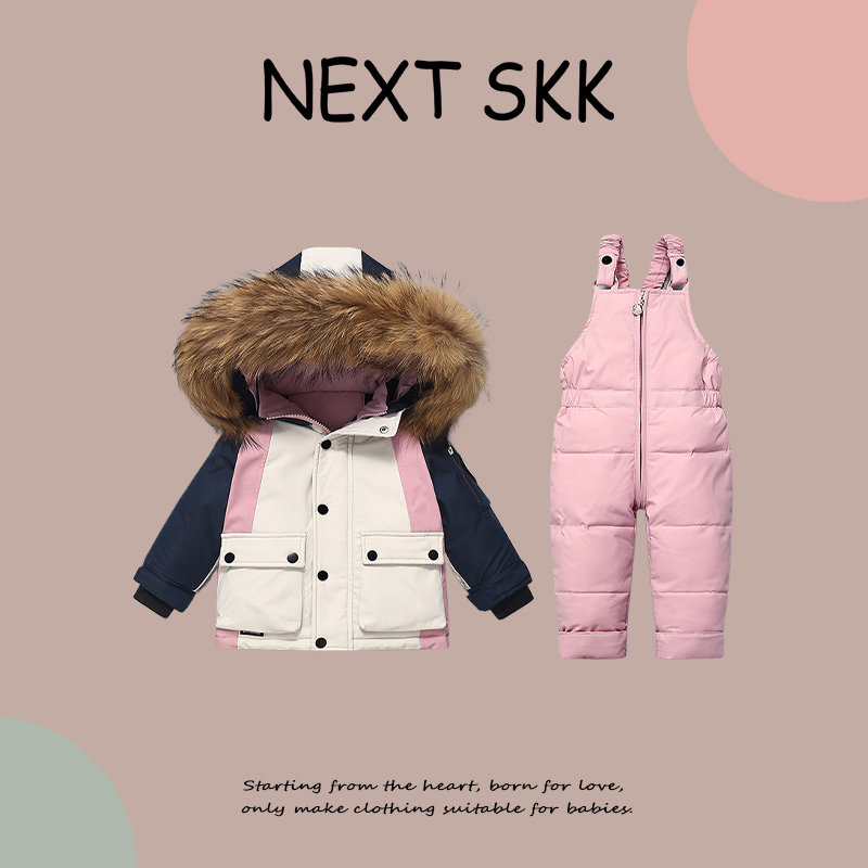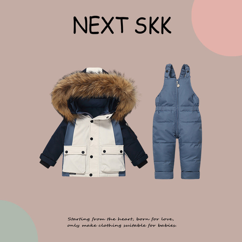 英国NEXT SKK儿童羽绒服冬季保暖背带裤两件套男女宝宝外出滑雪服