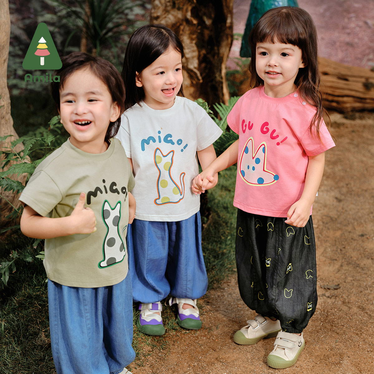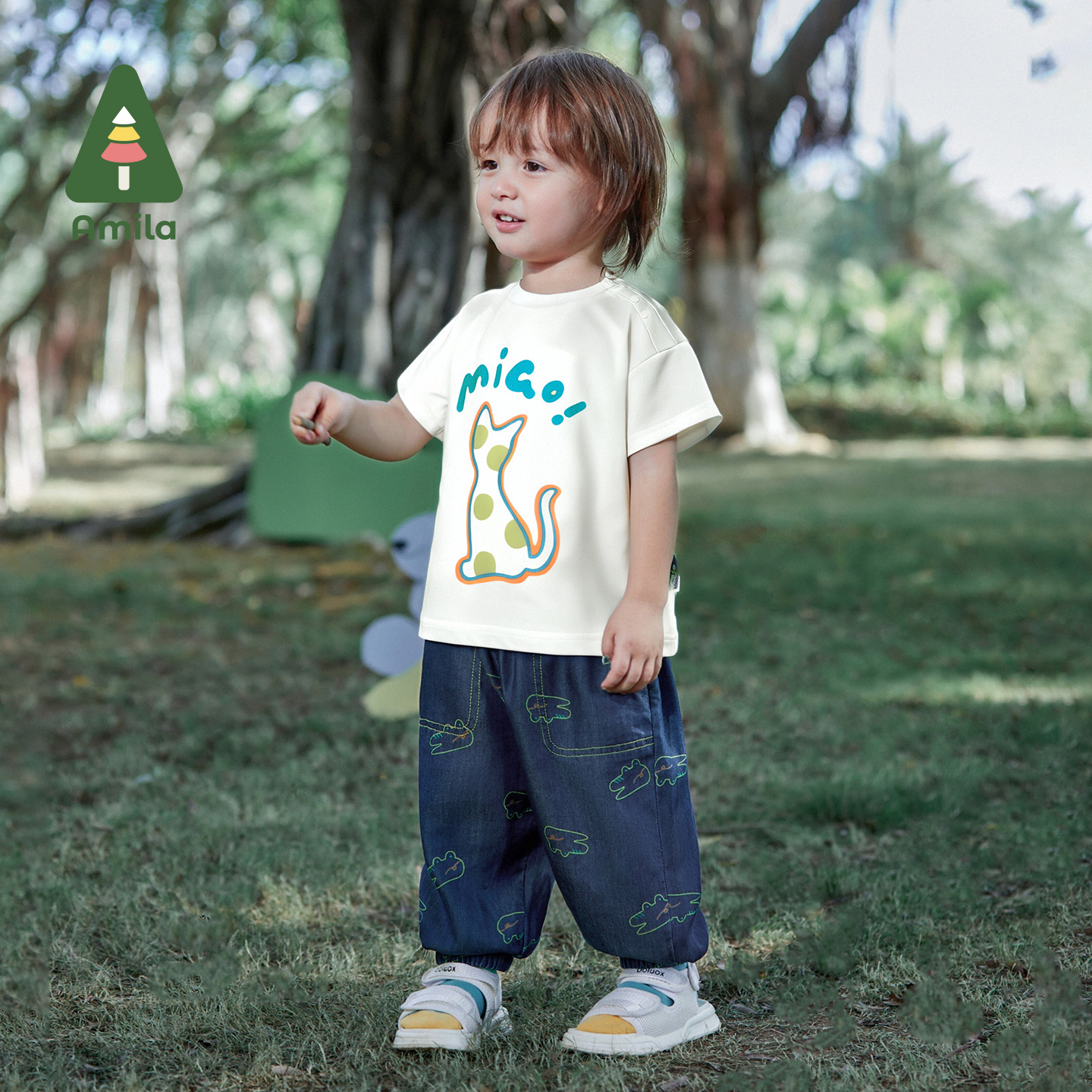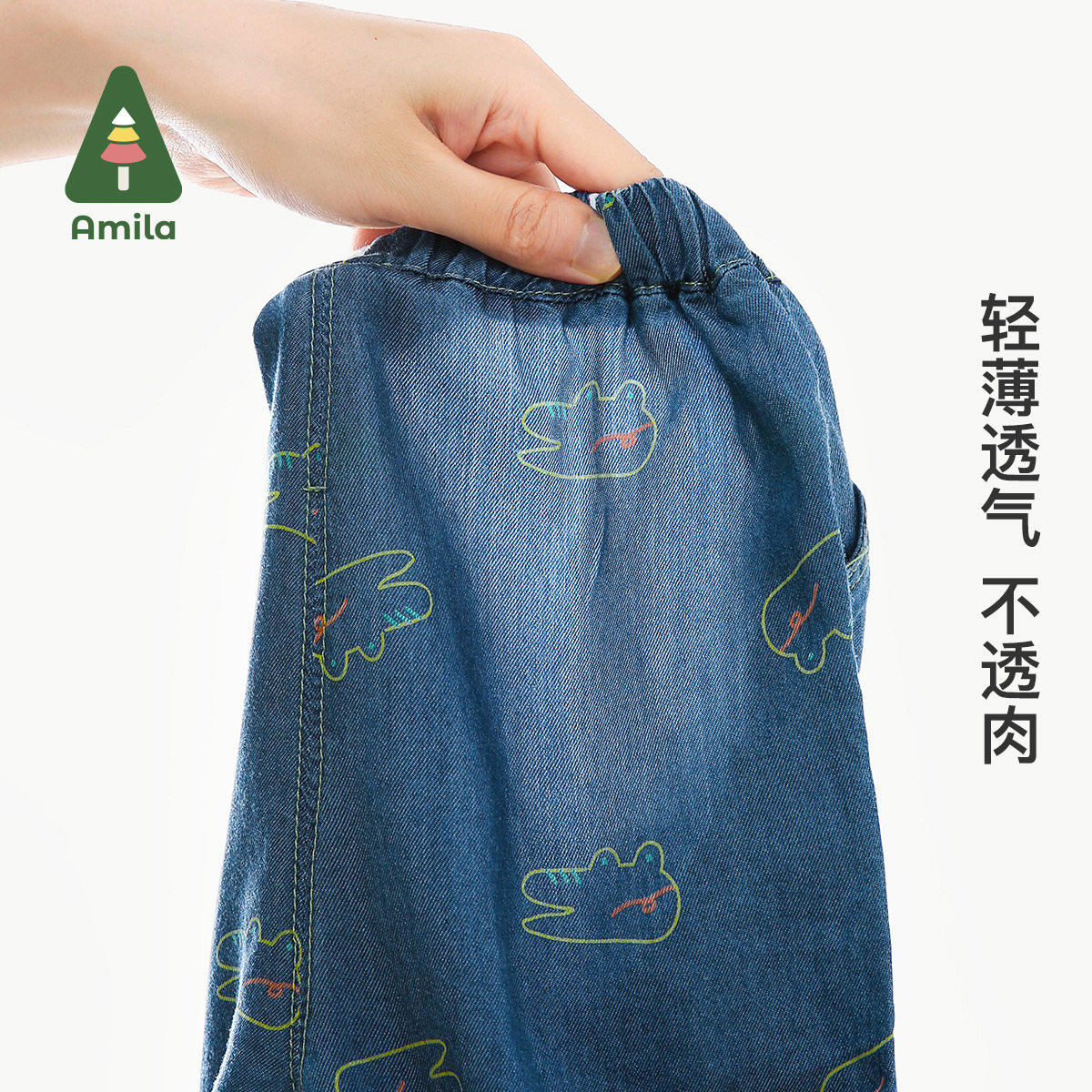 Amila儿童长裤2025夏装天冰丝软牛仔裤防蚊裤男童女童宝宝裤子