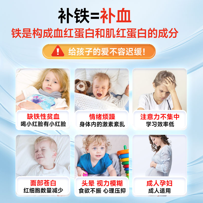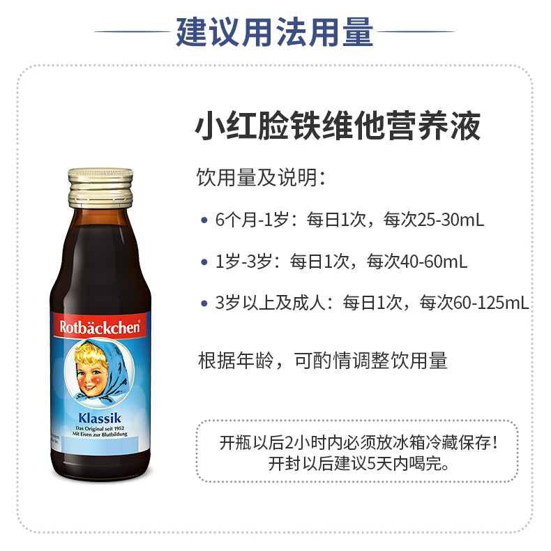 德国小红脸儿童液体铁剂口服液贫血婴儿宝宝婴幼儿青少年铁营养剂