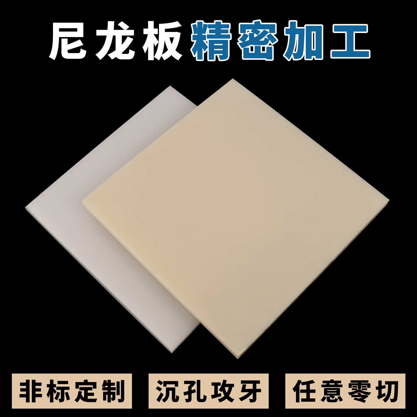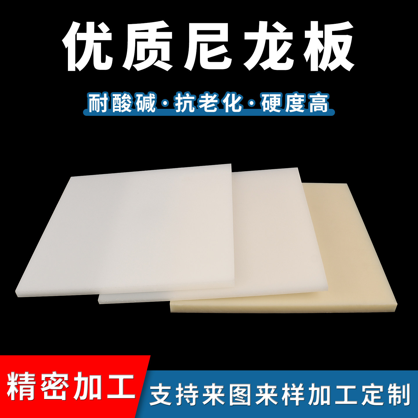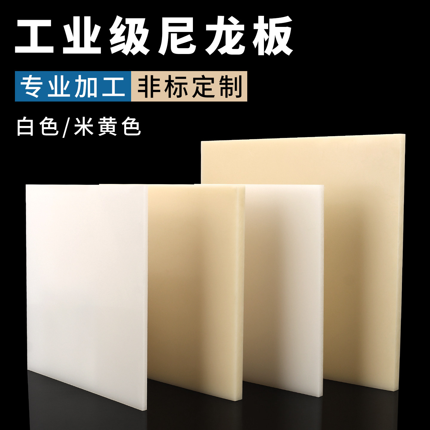 白色尼龙板pa66绝缘板mc米黄色硬塑料板长条方棒垫块耐磨加工定制