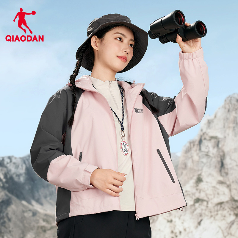 乔丹中科探-联名款加绒风衣商场同款2025新款女宽松抗静电户外