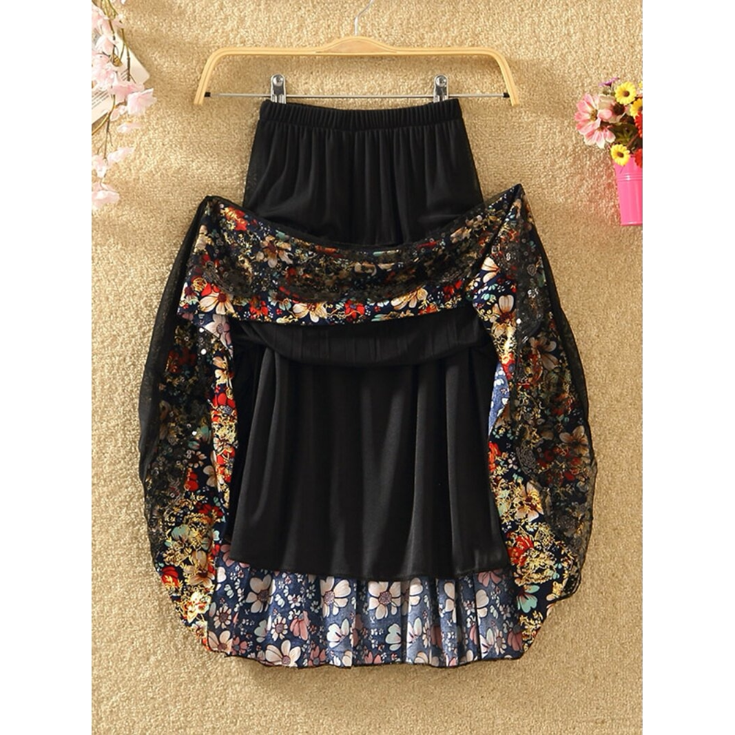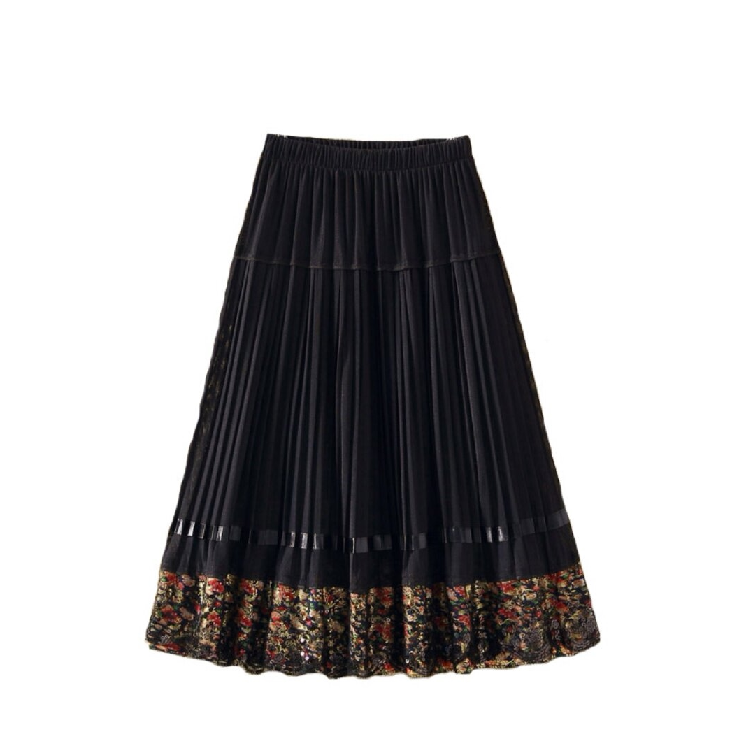 中老年半身裙松紧腰中长裙女装裙妈妈跳舞裙子春季新款百褶网纱裙